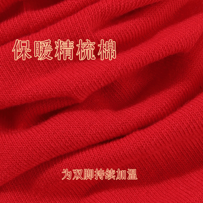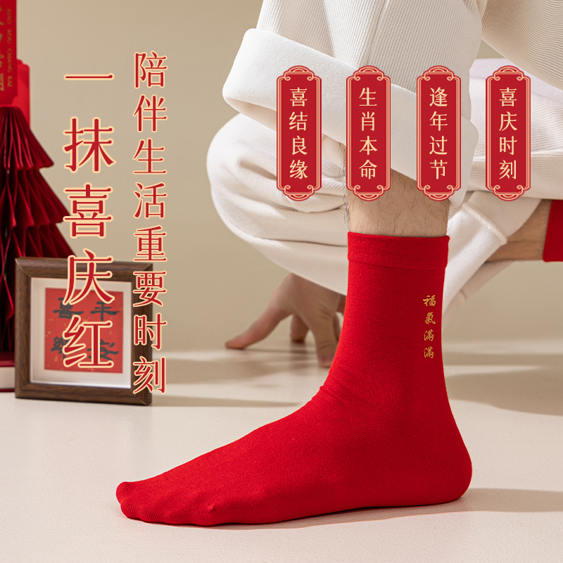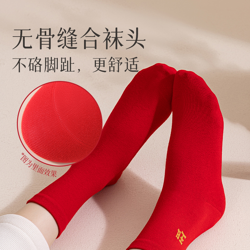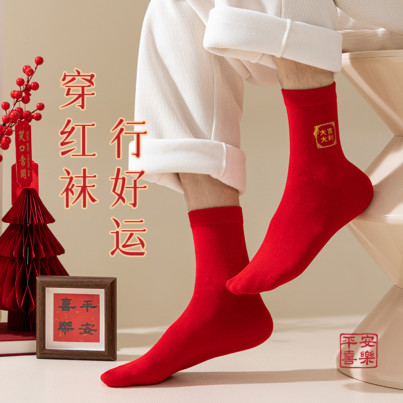 红色棉袜子女本命年男女秋冬季 情侣结婚袜印花无骨新年红袜中筒袜