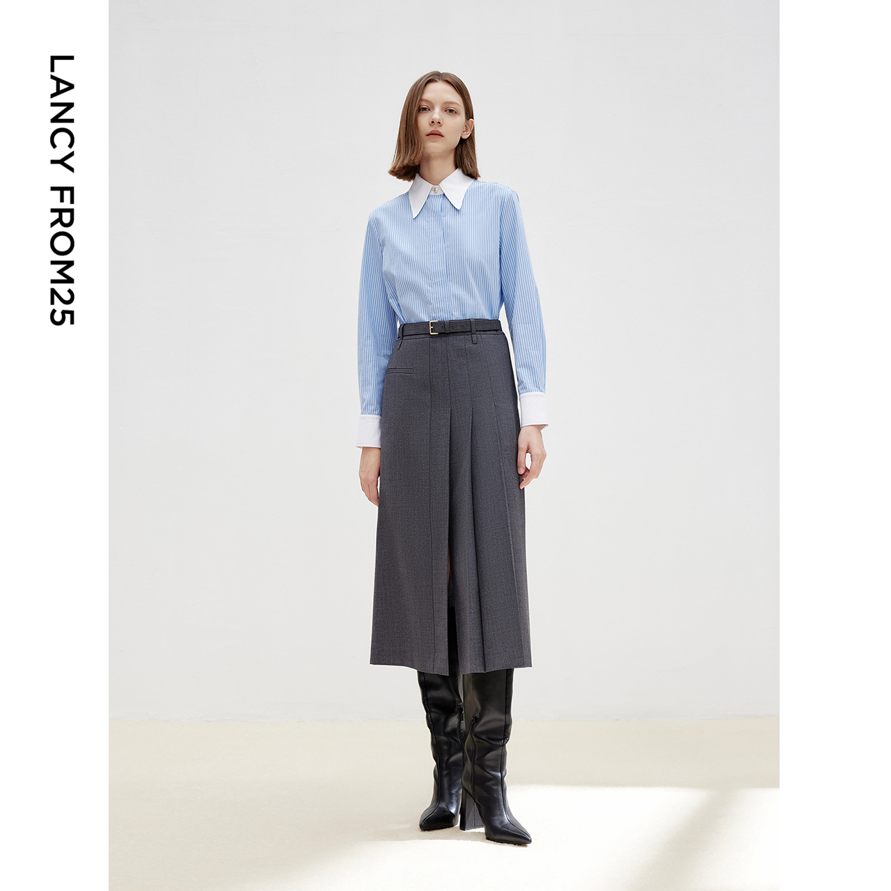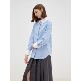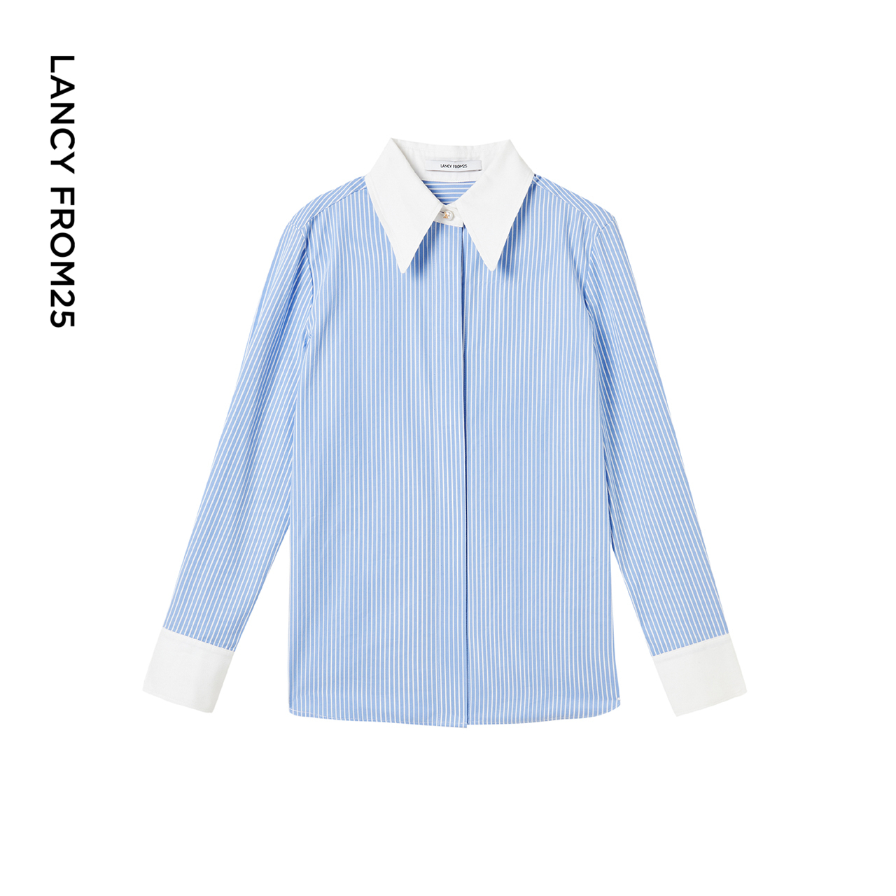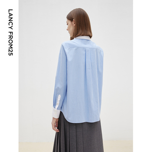 通勤纯棉蓝色设计感气质条纹内搭衬衫 朗姿法式 上衣2025 免定金