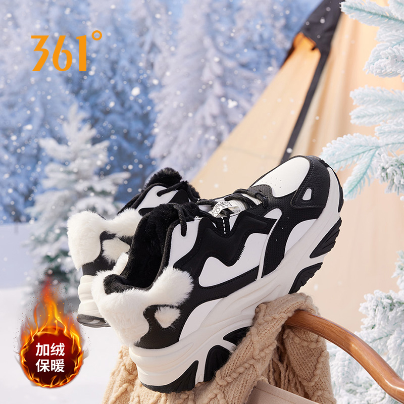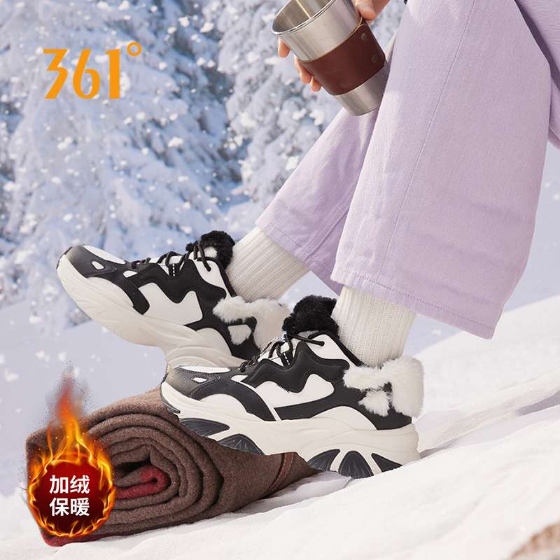 新款 2024冬季 女士加毛棉鞋 冬鞋 子女 361加绒女鞋 361度休闲鞋 运动鞋