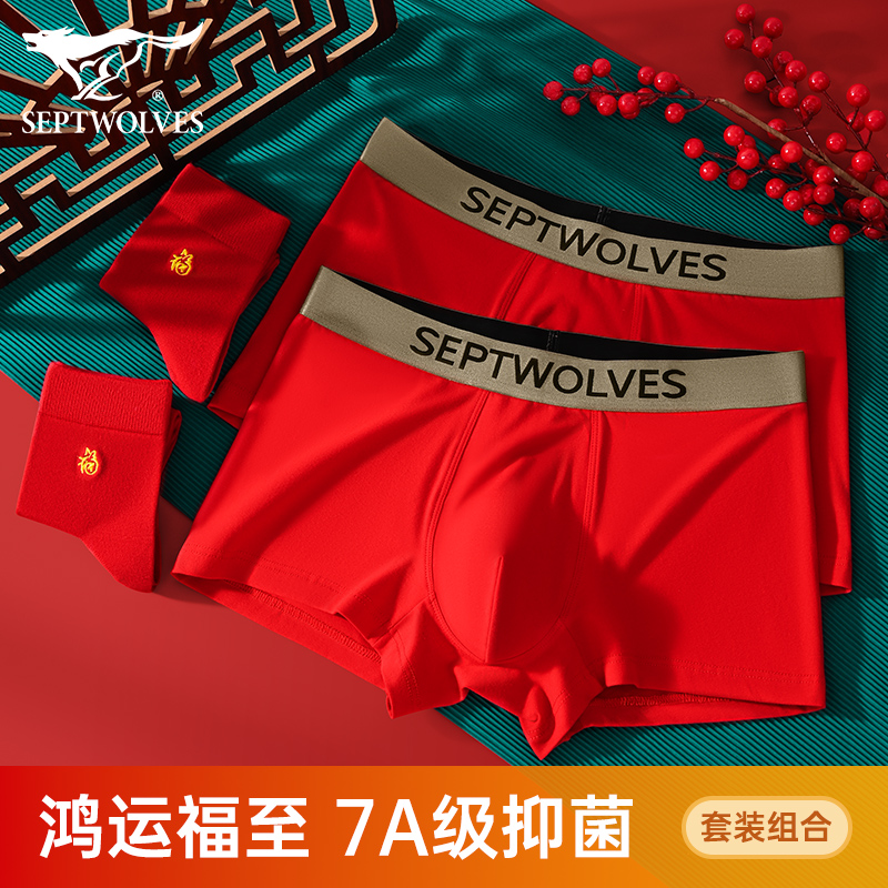 内裤 2025新款 男生纯棉四角短裤 男款 高档名牌透气平角裤 七匹狼男士
