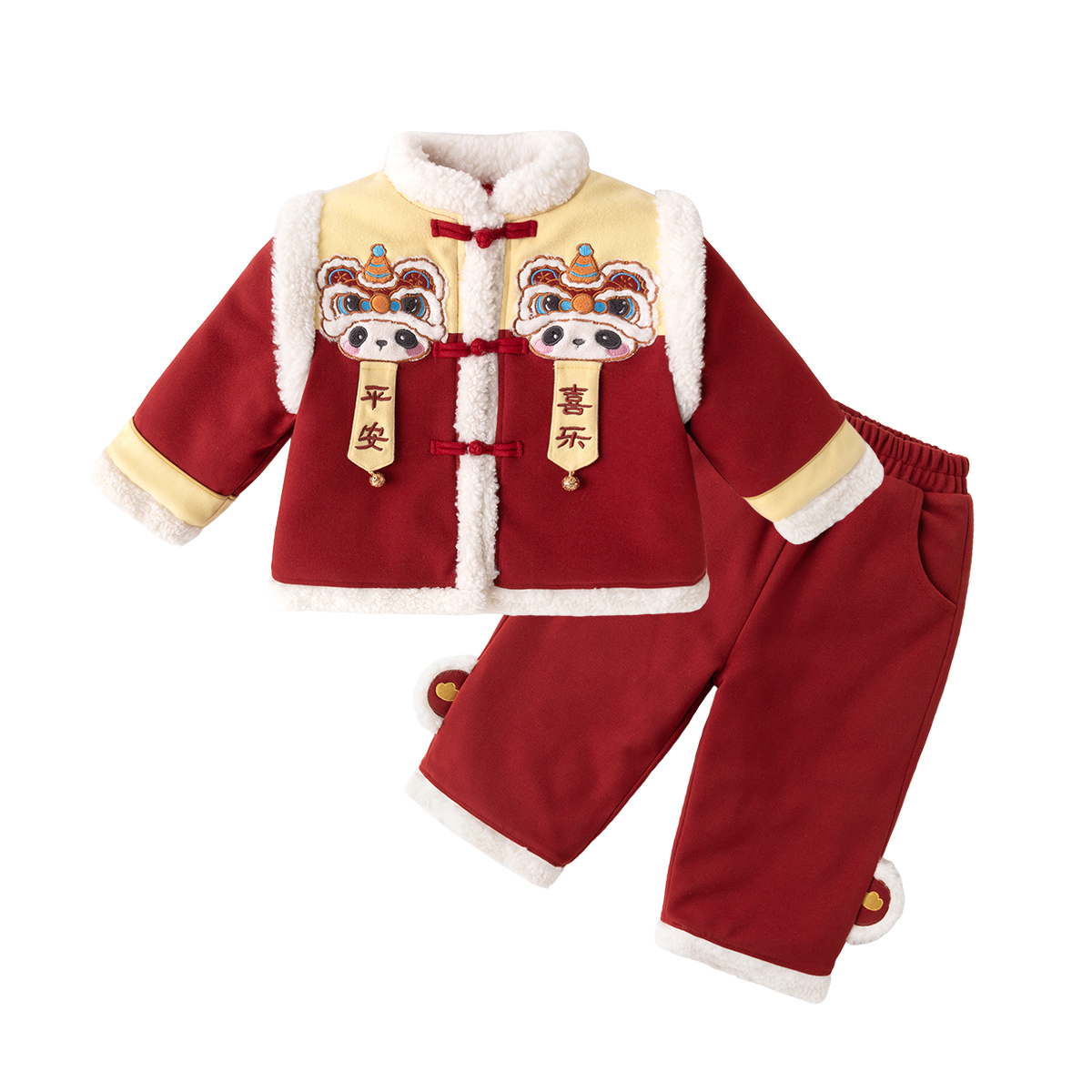 夹棉上衣女童唐装 宝宝喜庆拜年服儿童新中式 秋冬款 嘟嘟家男童套装