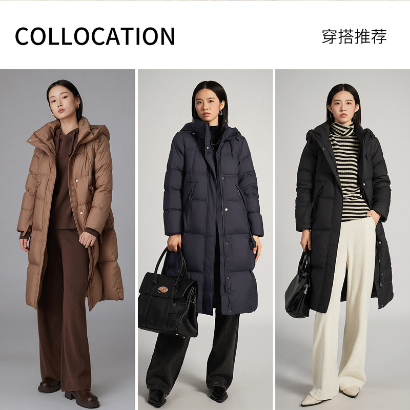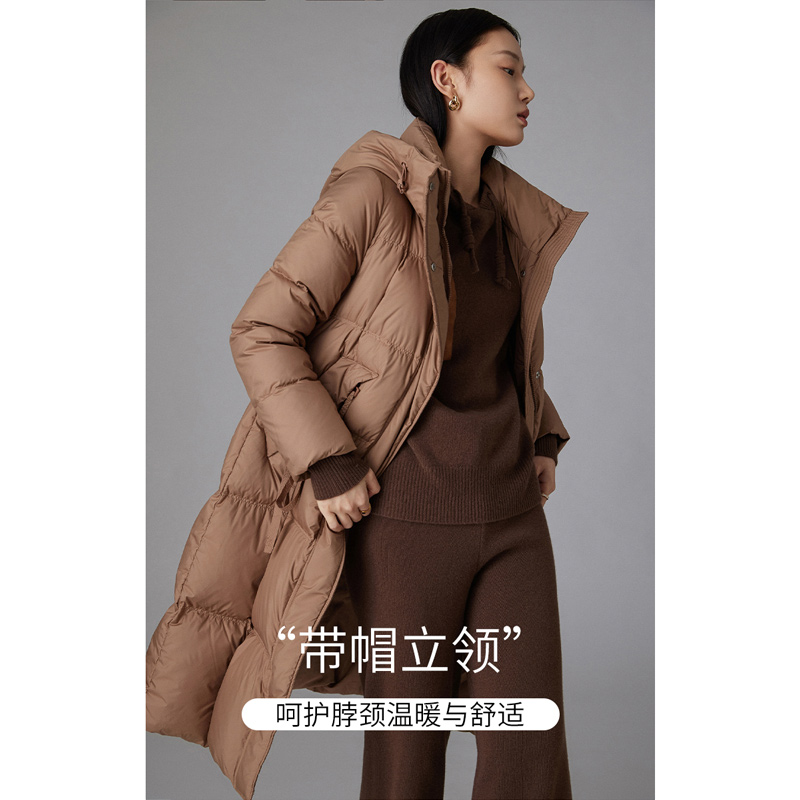 宽松百搭白鸭绒2025年秋冬新款 IVYKKI艾维时尚 连帽羽绒服女中长款