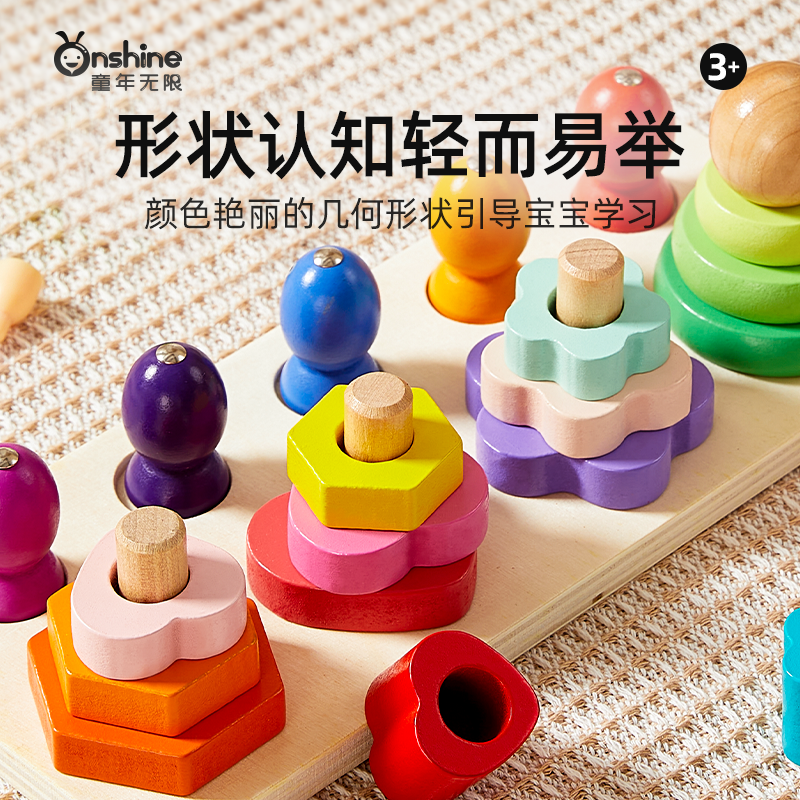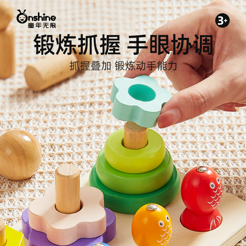 蒙氏几何套柱宝宝早教颜色分类认知教具木质磁性钓鱼形状配对玩具
