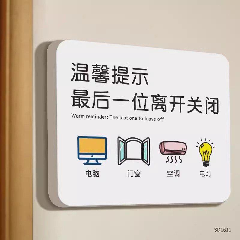 下班六件事温馨提示关空调提示贴下班四件事提示牌出门提醒牌公司会议室办公室离开时关灯空调门窗标识牌定制