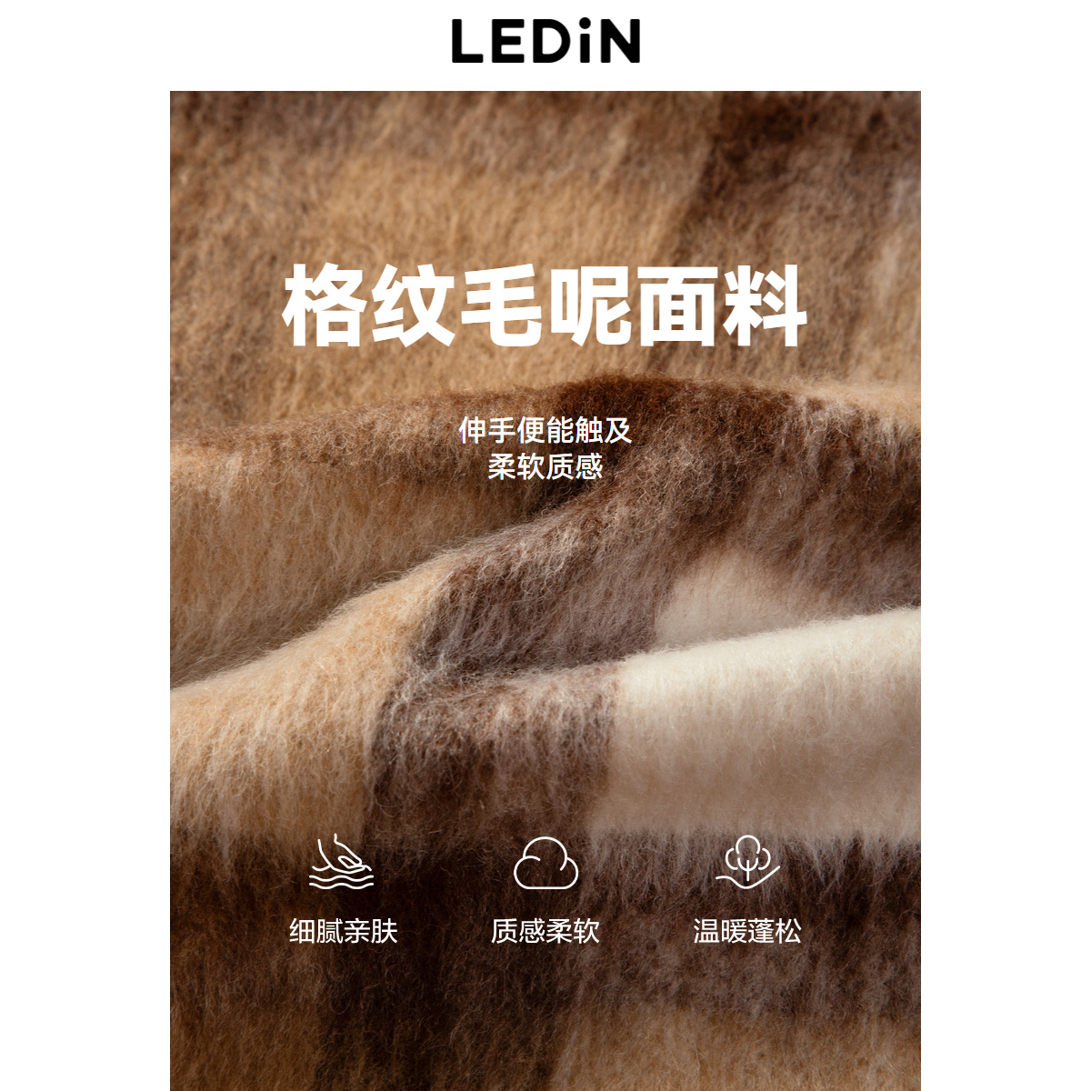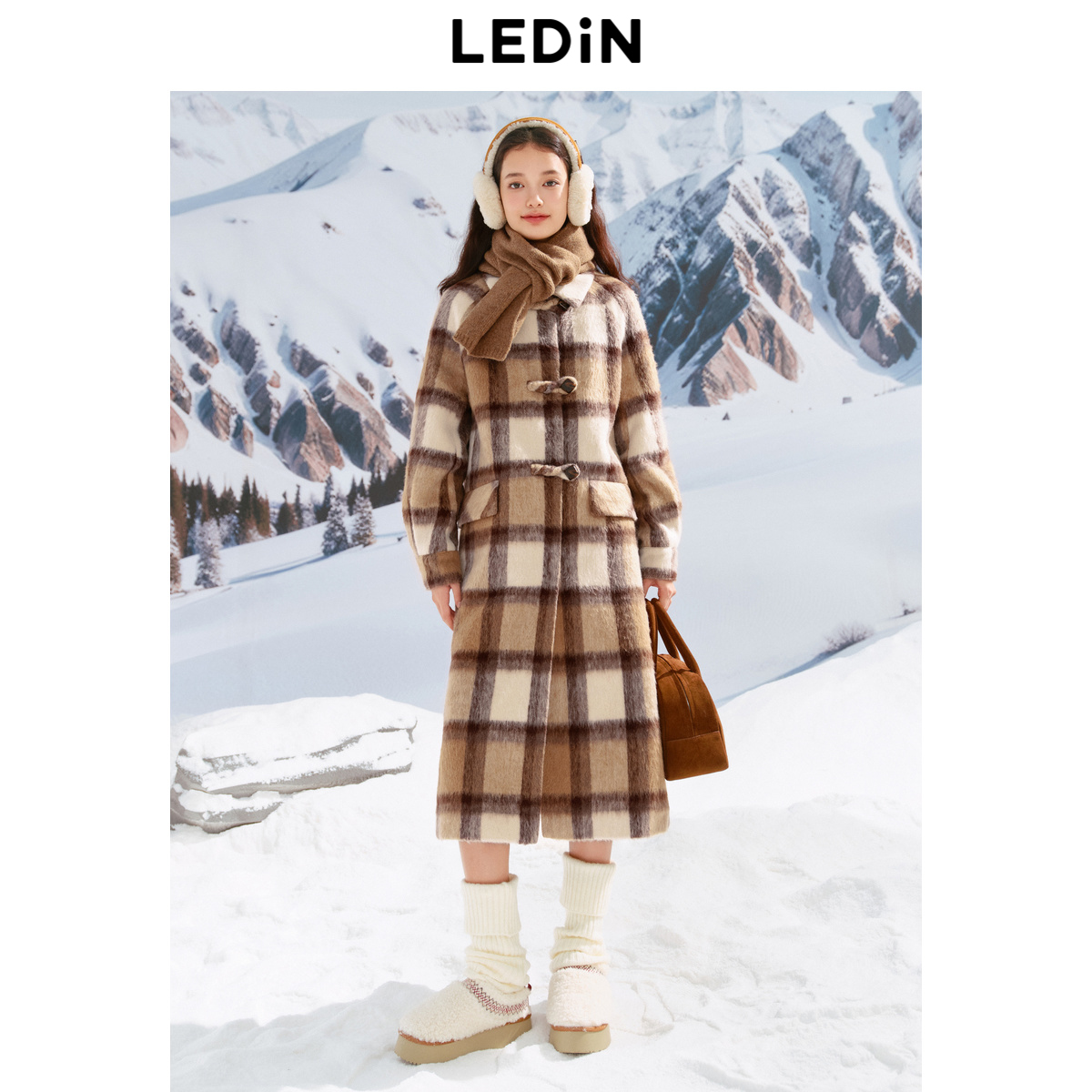 冬气质感大衣 乐町韩系学院格纹牛角扣毛呢外套长款 清仓