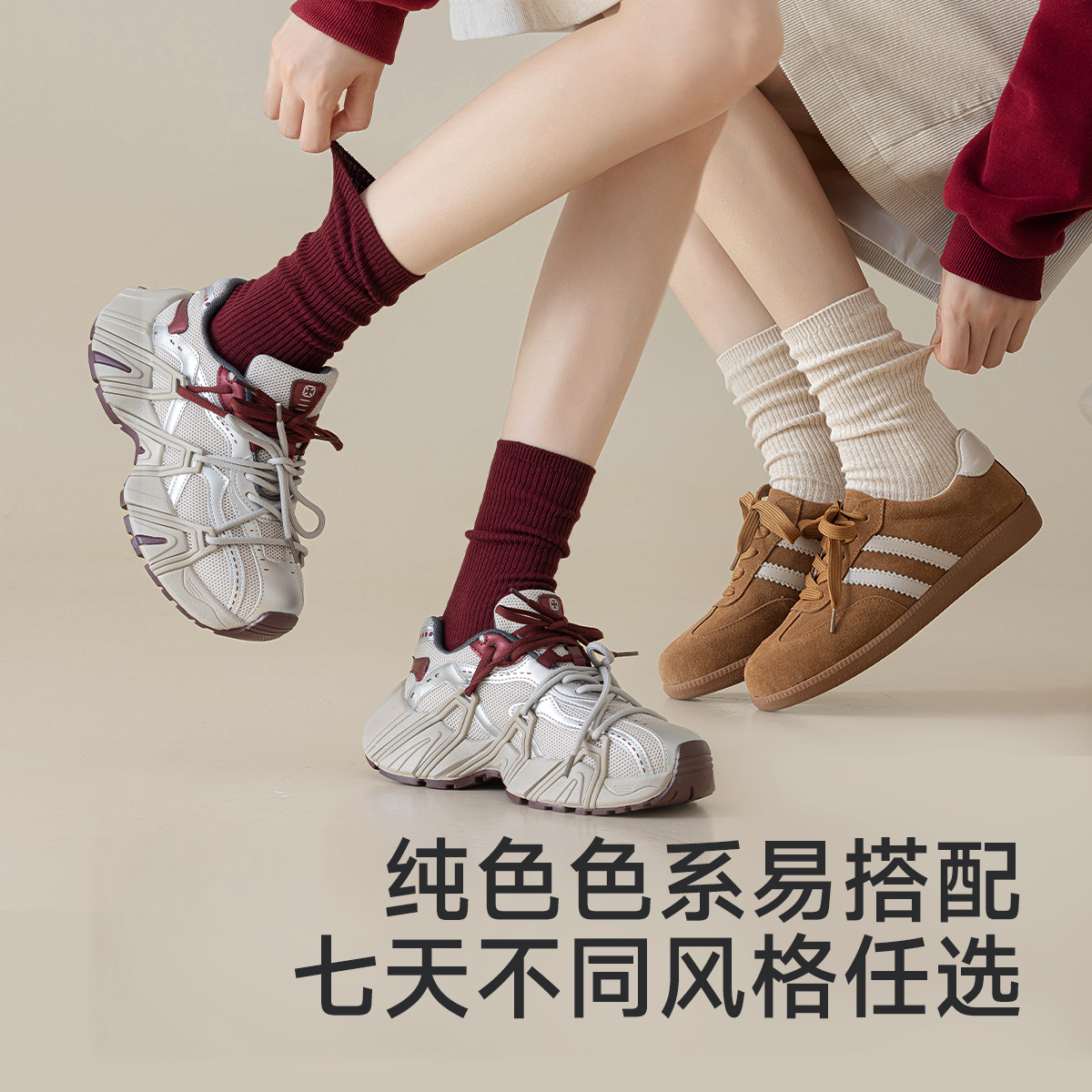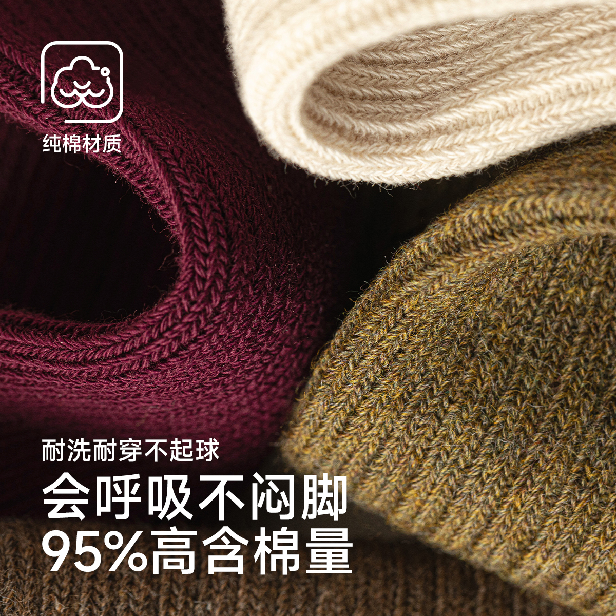 袜子女纯棉春季 安可拉红堆堆袜女士酒红色中筒棉袜春秋纯色月子袜