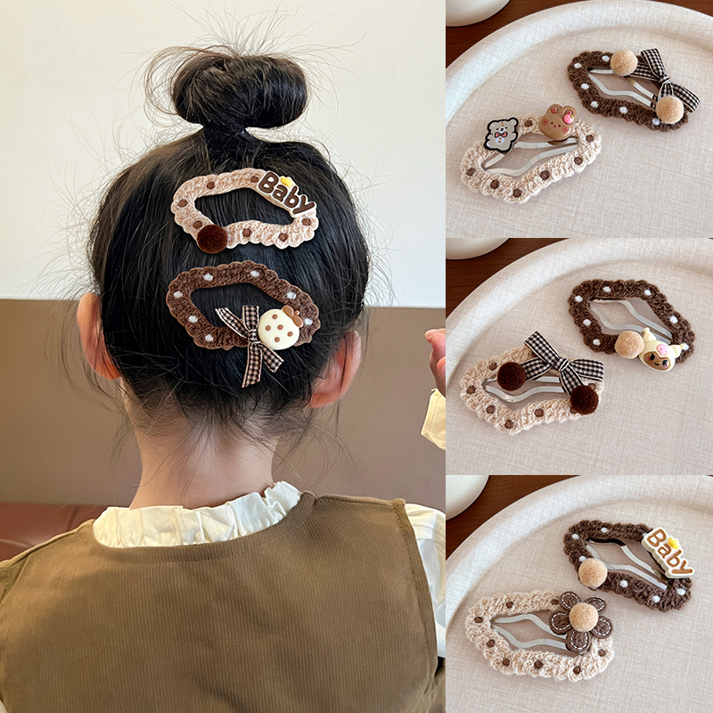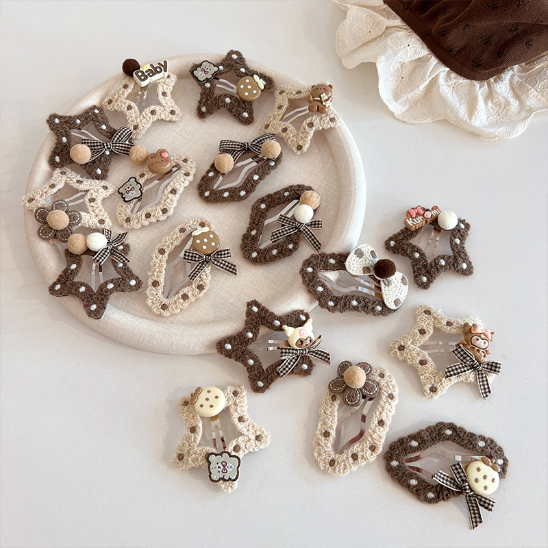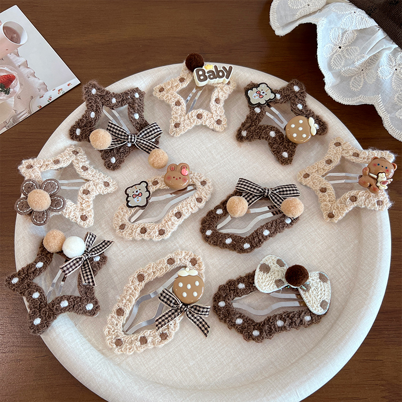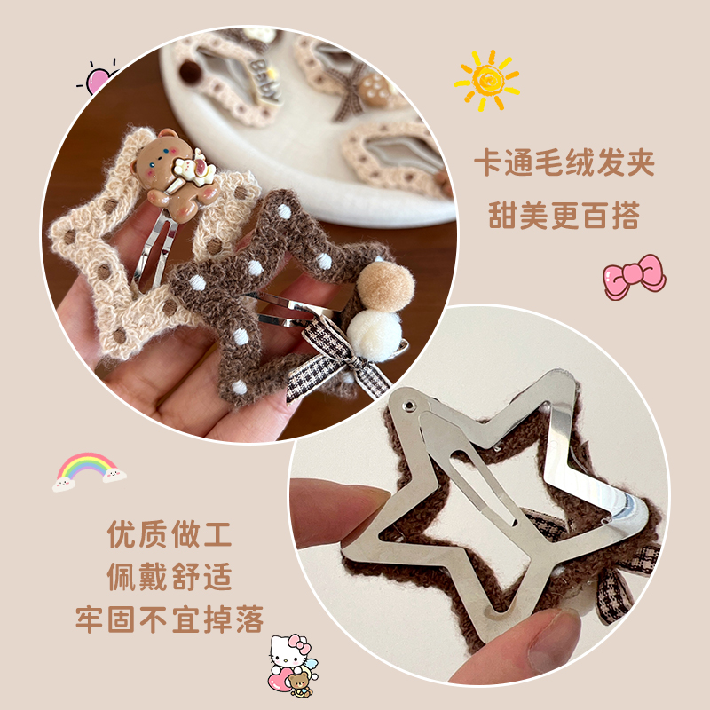 发夹女儿童秋冬奶咖色bb夹可爱毛绒女童星星发卡2024新款 宝宝头饰