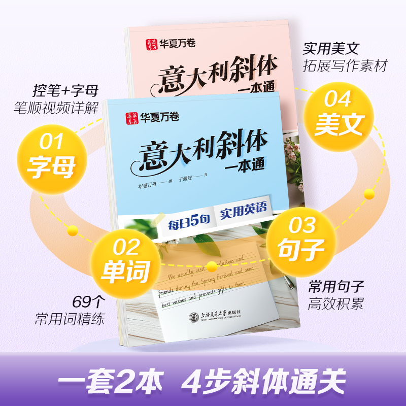 华夏万卷英语字帖描红临摹练字帖连笔女生漂亮字体专用初中生高中生大学生考研成人英文字母书写练习初学者 意大利斜体英语字帖