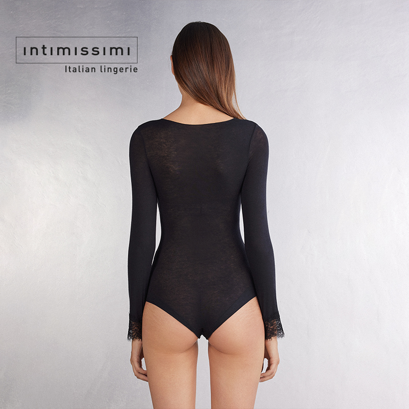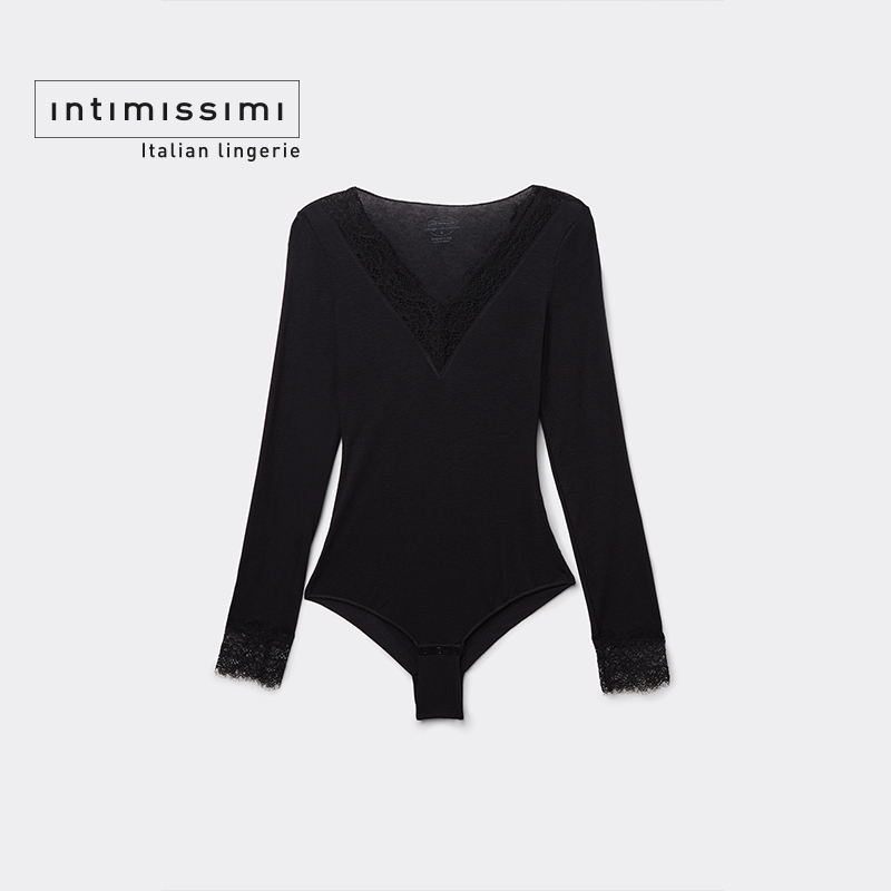 Intimissimi意舒漫女士时尚 含羊绒V领蕾丝花边连体衣BOD28V