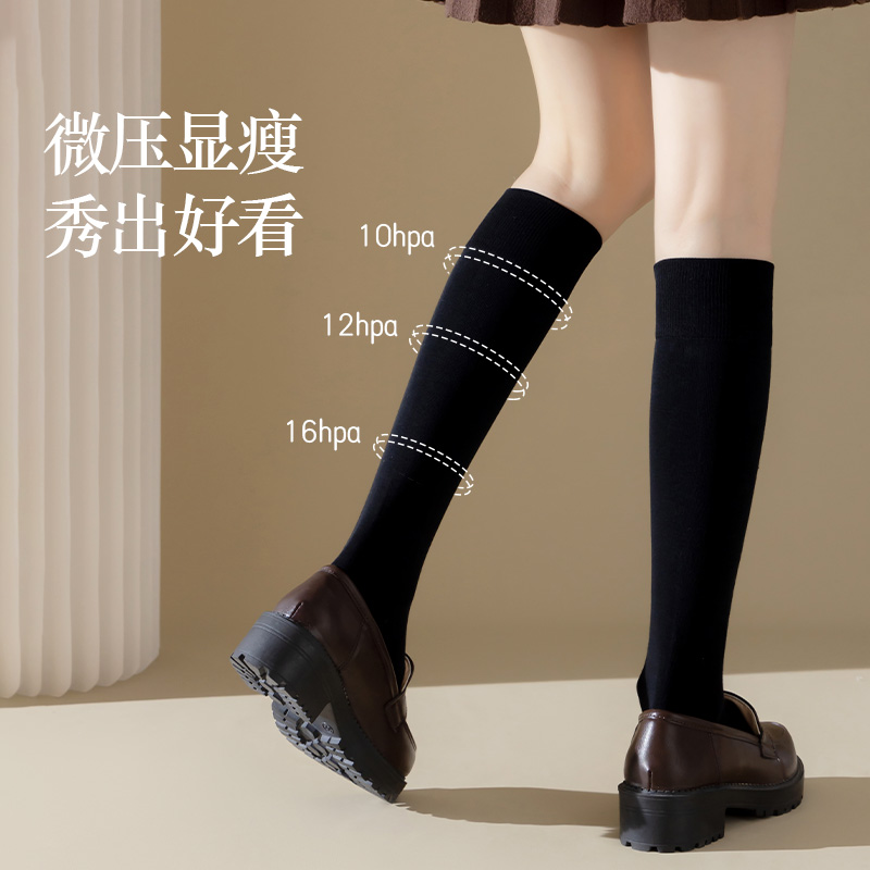 小腿袜子女纯棉长筒袜jk黑白色高筒少女压力长袜防臭秋冬季 神器