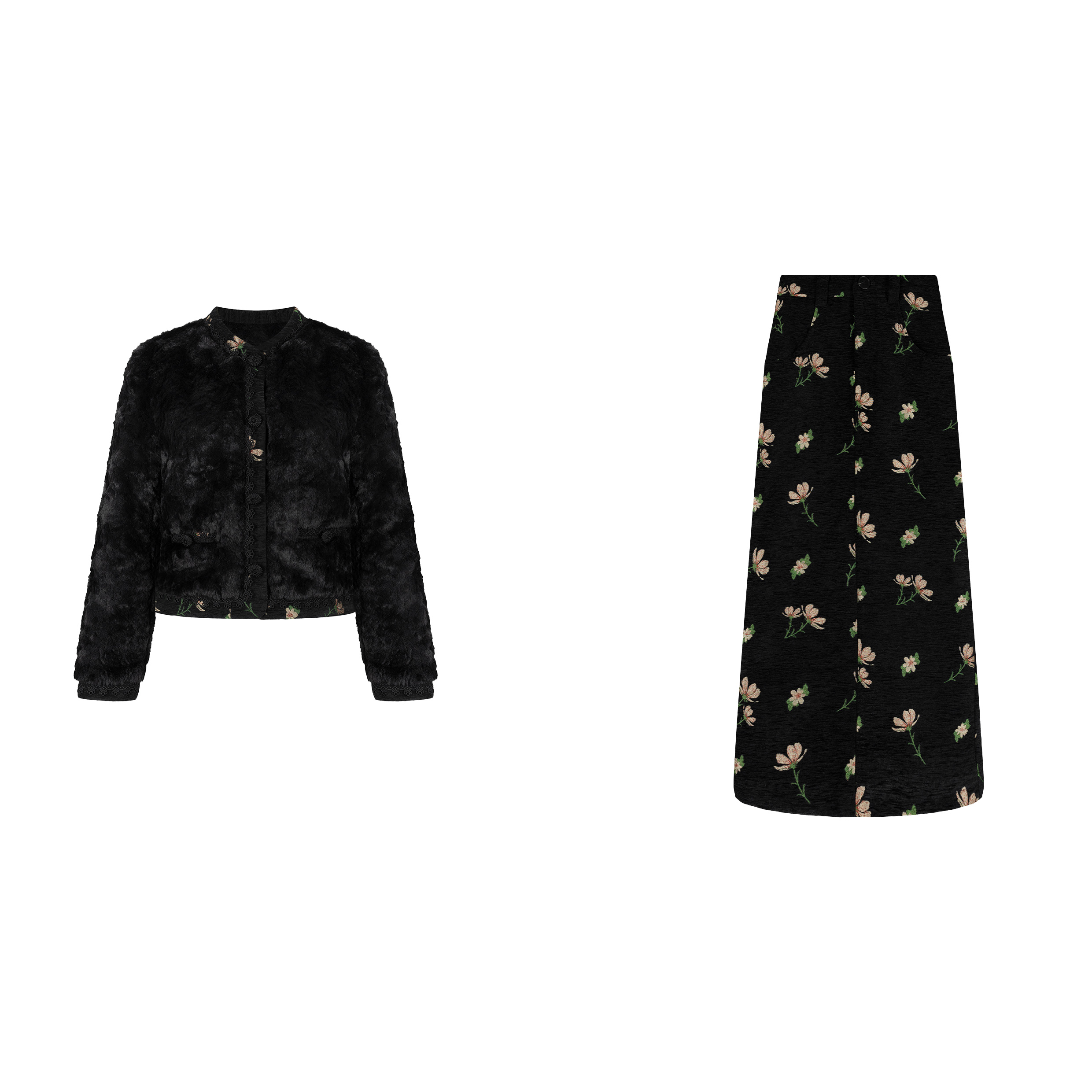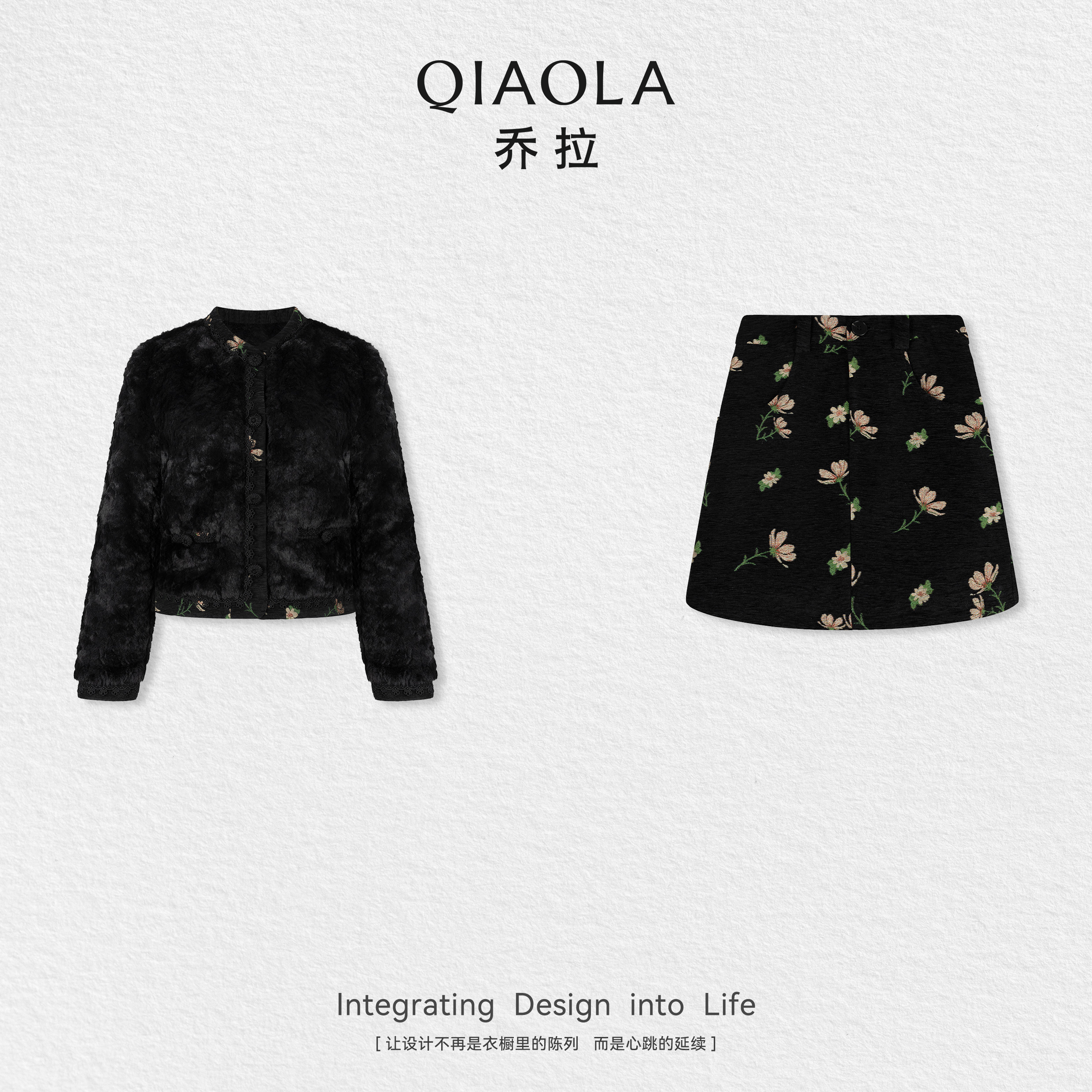 套装 乔拉 小香风单排扣黑色外套裙子时尚 秋冬新款 女 繁花礼笺