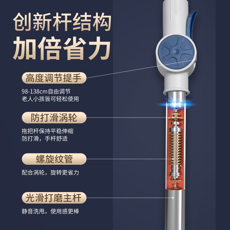 旋转拖把杆通用配件免手洗家用一拖净单杆拖把大全手压墩布拖布杆
