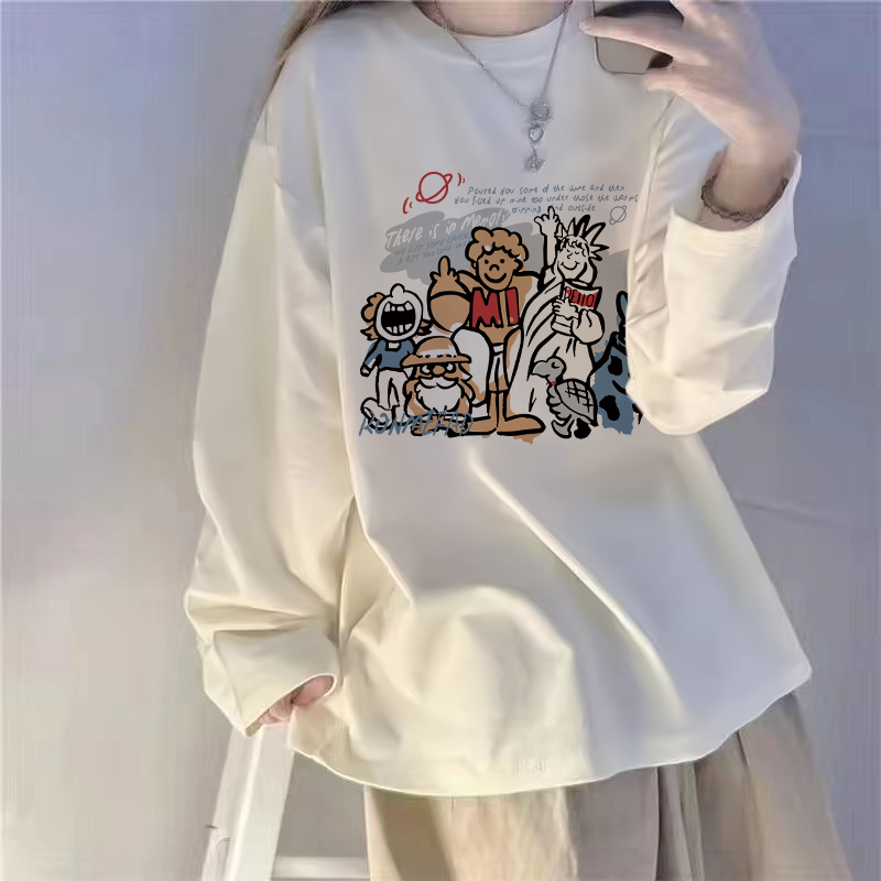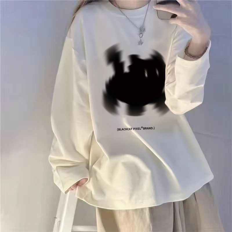 秋季 女装 薄款 慵懒风上衣胖mm大码 T恤 美式 显瘦长袖 复古内搭打底衫