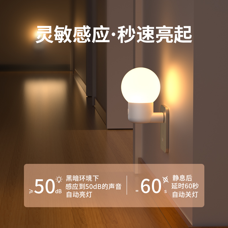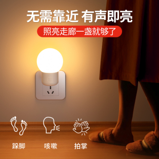 柔光卧室LED声控灯感应床头灯人工语音控制小夜灯智能USB插电台语音小夜灯