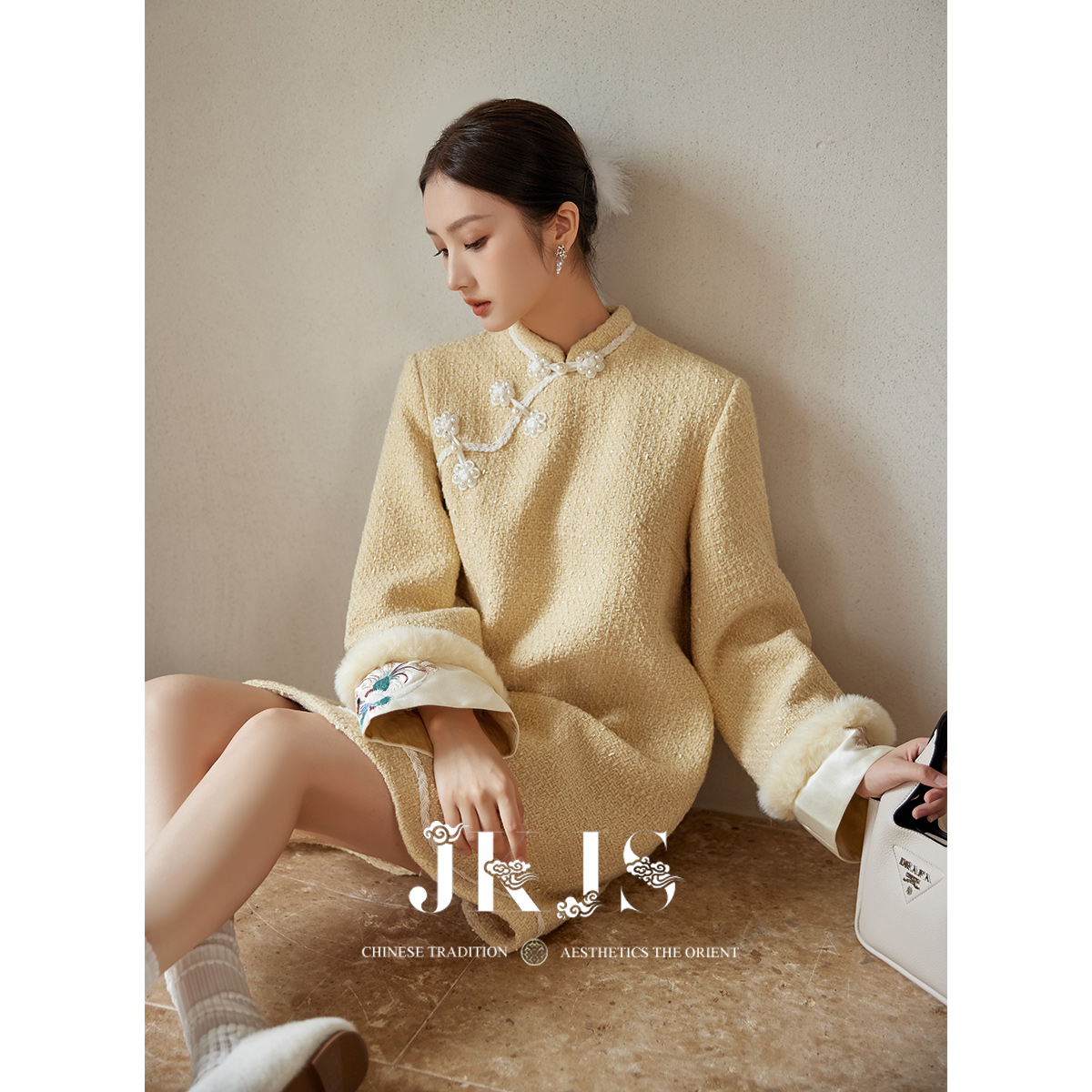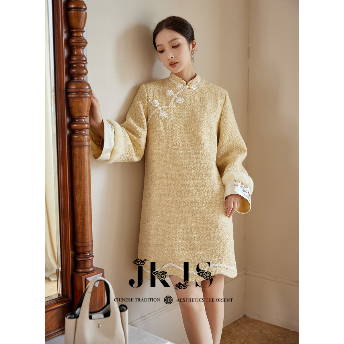 新中式 新款 国风显瘦改良旗袍裙 毛呢连衣裙女2025冬季 喜婆婆婚宴装
