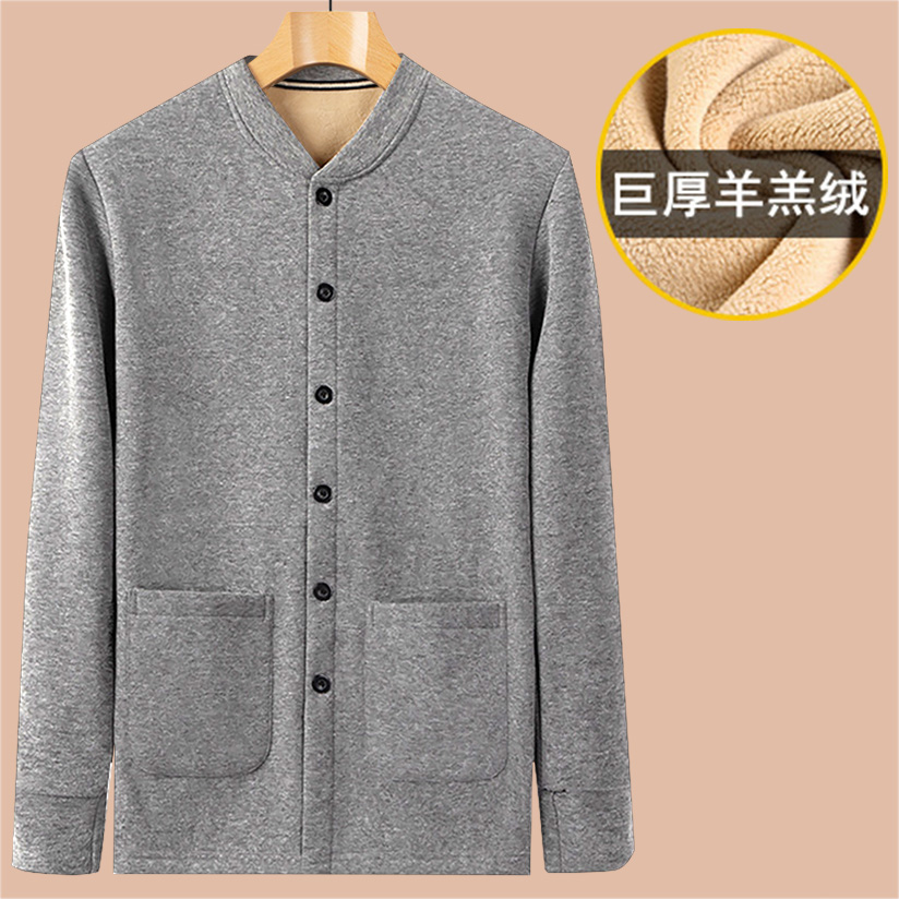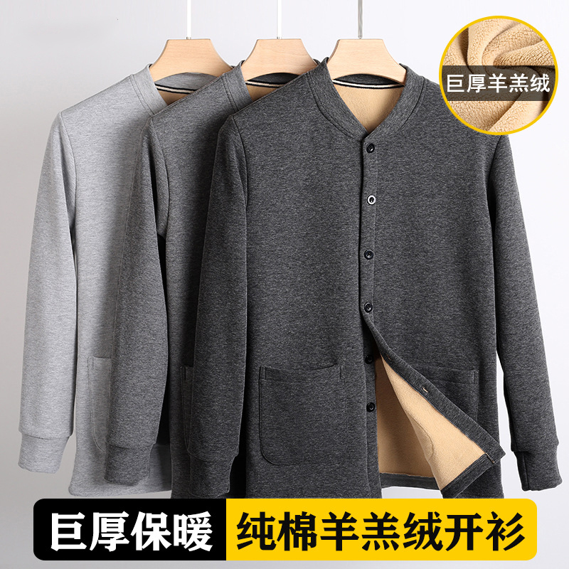 爸爸大码 中老年人开衫 男装 加绒加厚冬季 保暖内衣毛衣上衣 秋衣男士