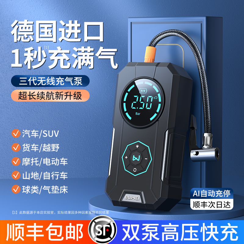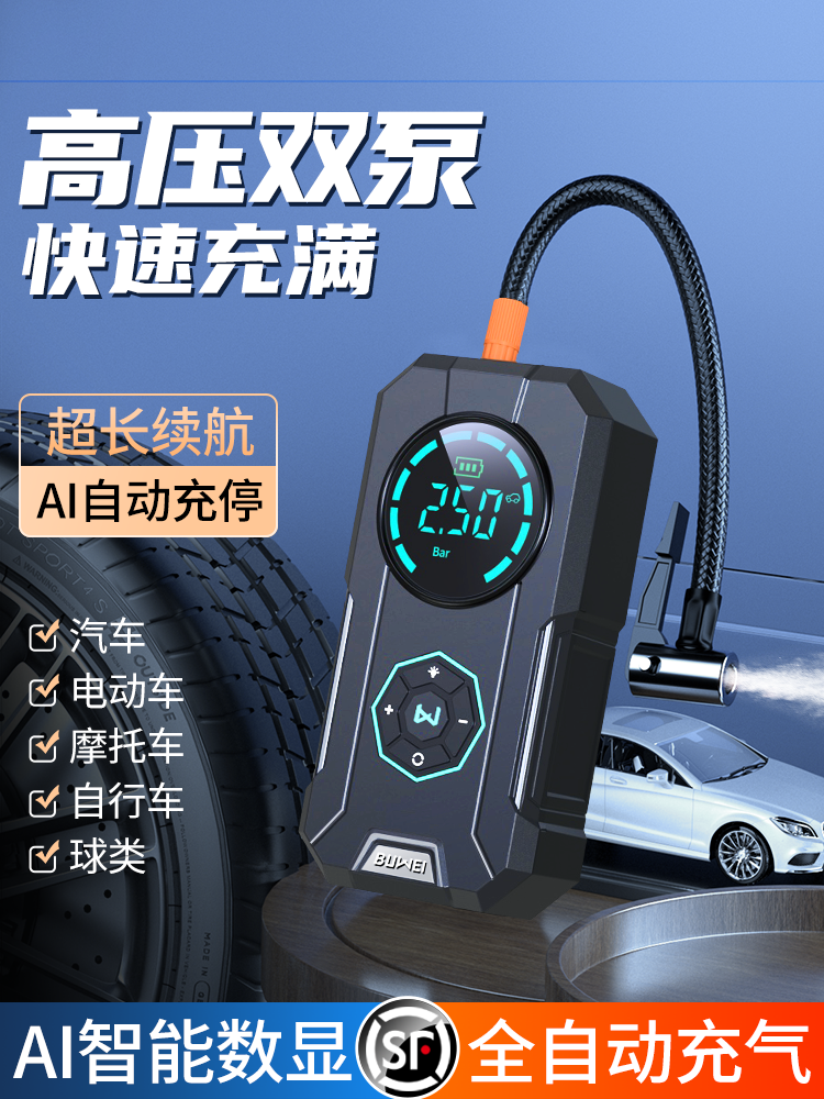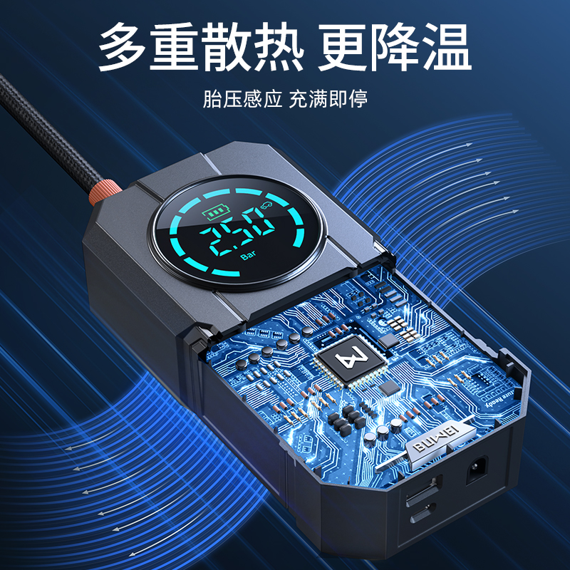 埠威车载无线充气泵便携式 汽车车用电动打气筒轮胎高压冲气加气宝