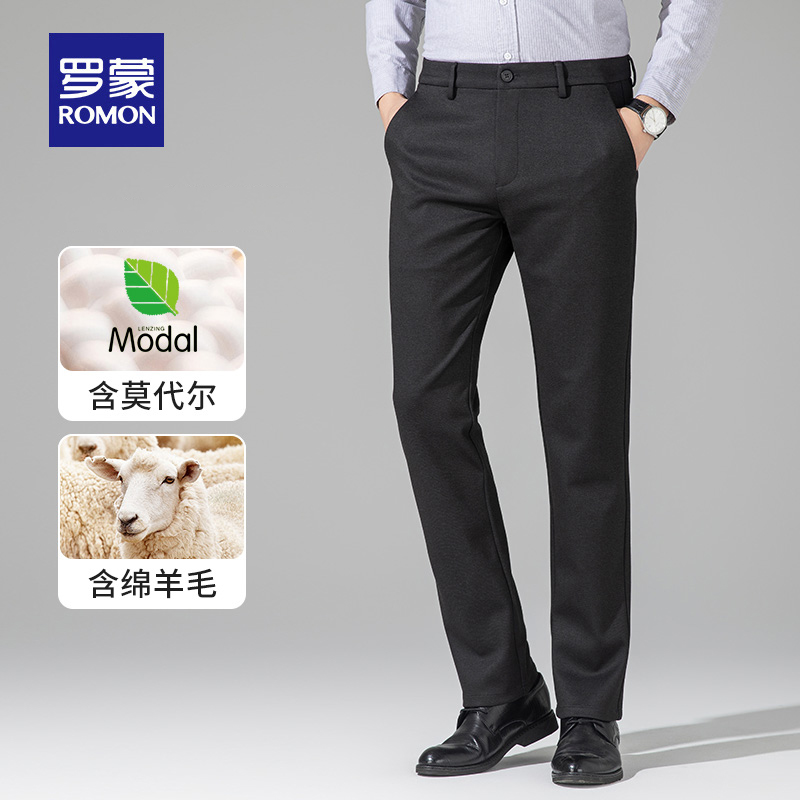 罗蒙男士 商务磨毛休闲裤 2025秋季 工装 羊毛 新款 西裤 含莫代尔