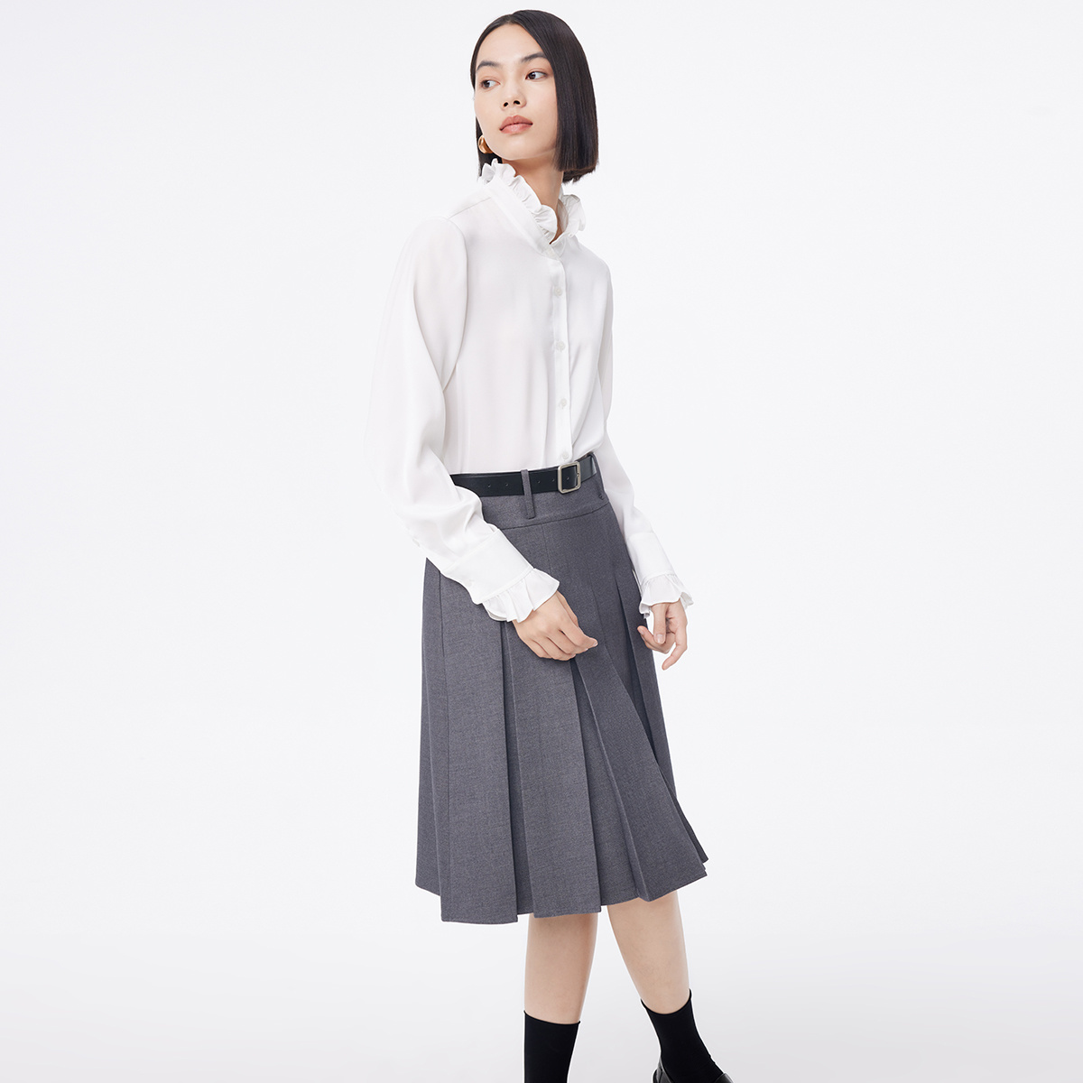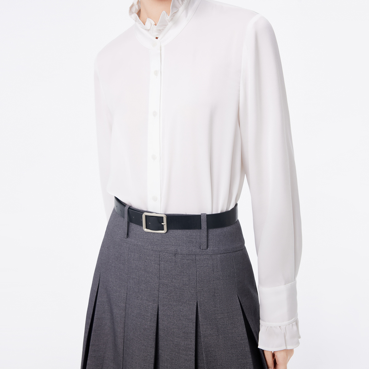 气质慵懒风褶领棉长袖 HM女装 法式 秋季 宽松衬衣1270106 花边衬衫