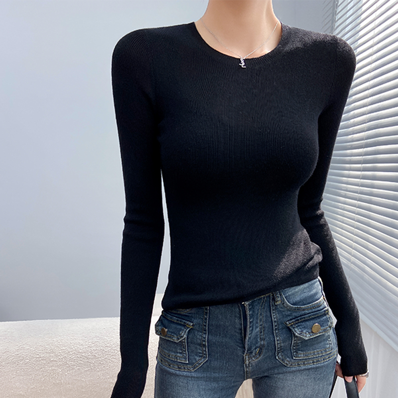 女长袖 高级感一线成衣圆领毛衣秋冬女内搭无缝修身 显瘦针织打底衫