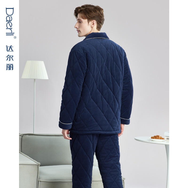 纯棉空气棉保暖夹层夹棉家居服套装 达尔丽睡衣男士 长袖 新款 厚 冬季