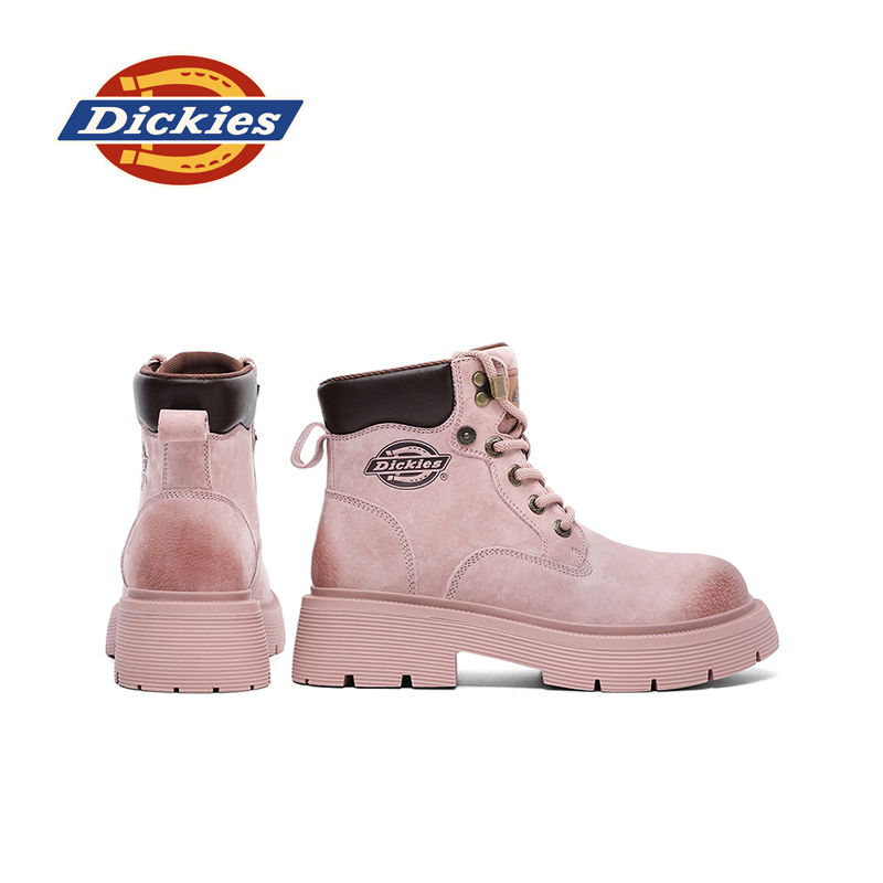 Dickies马丁靴女2025秋冬新款 女 复古甜酷英伦短靴粉色户外登山鞋