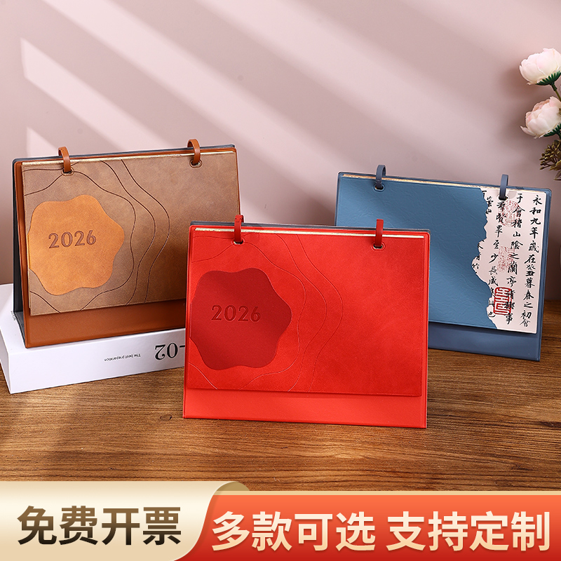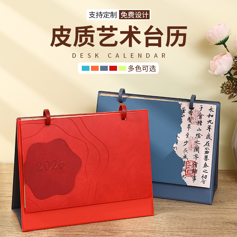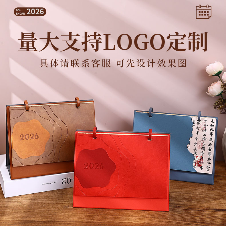 2026年新款 台历皮质商务日历创意桌面摆件记事本企业定制广告订制