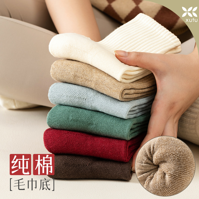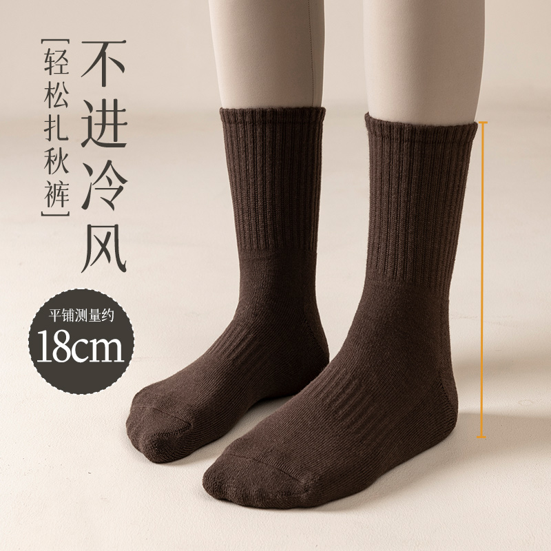 桑蚕丝羊毛袜子女款 中筒袜咖色棉袜冬天加厚保暖无骨月子袜 秋冬季
