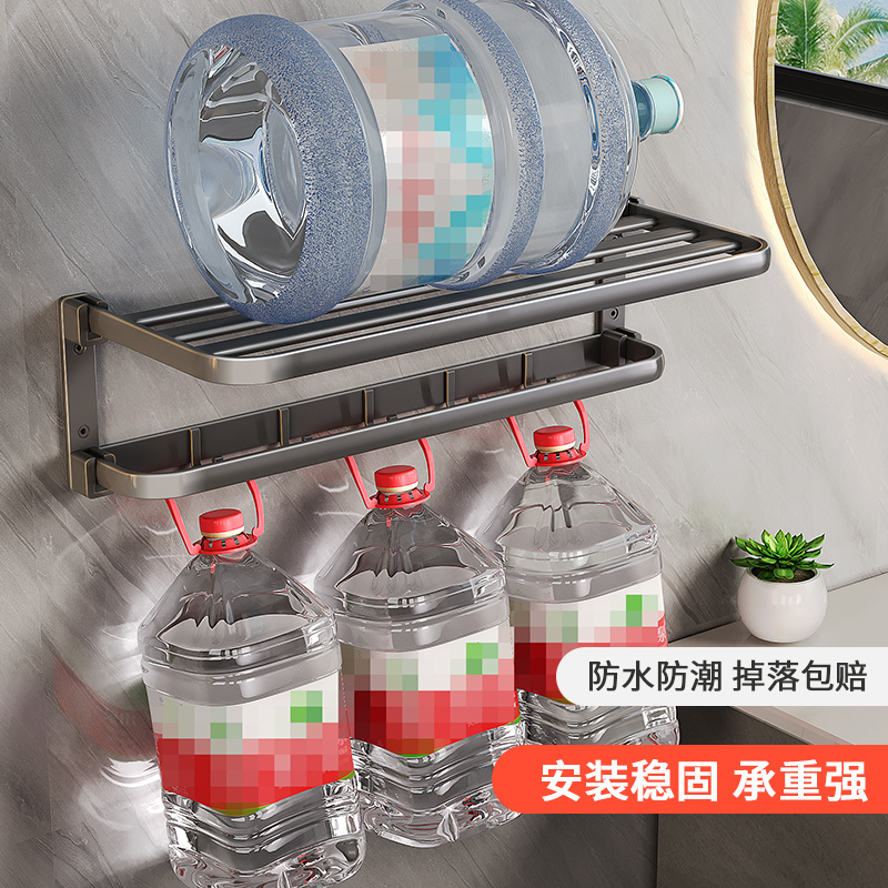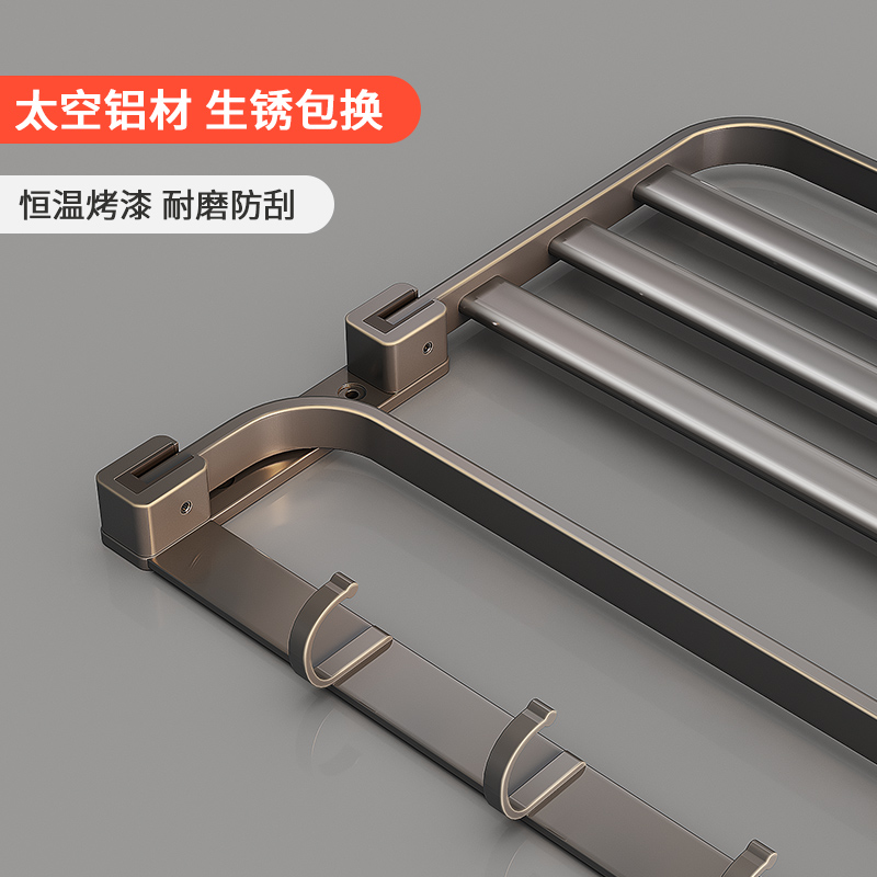 毛巾架枪灰简约 免打孔浴室晾浴巾架折叠卫生间双层铝合金置物架