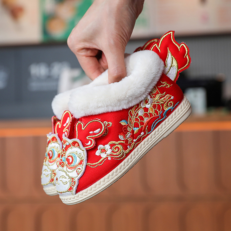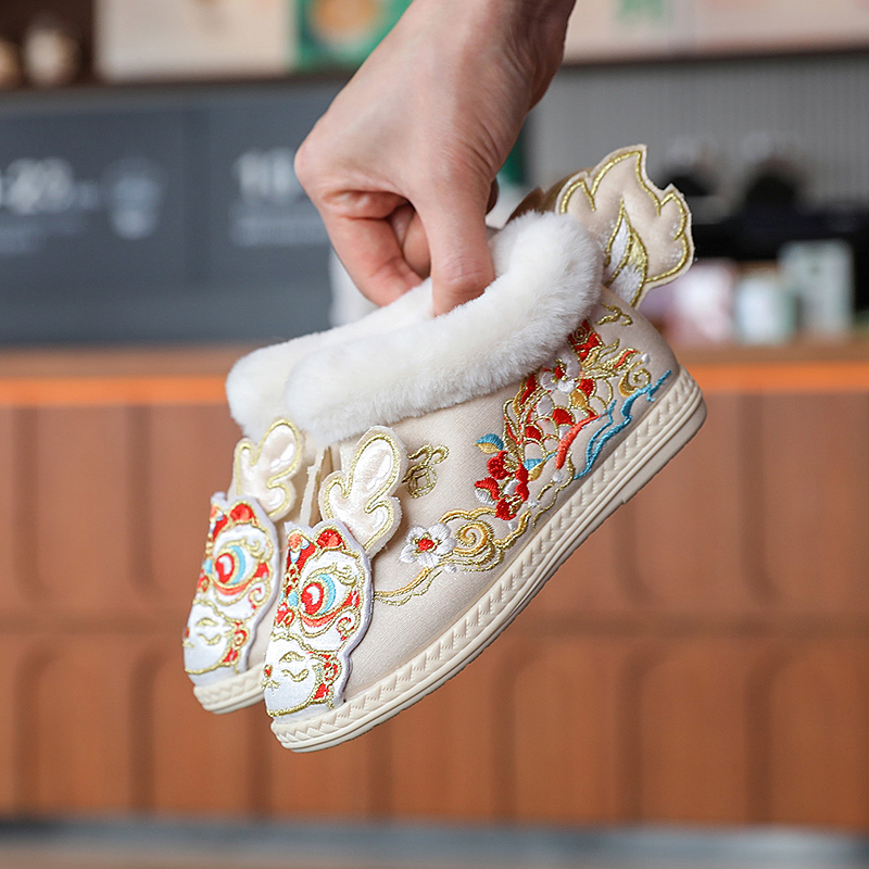 马面裙古风加绒棉鞋 女童鞋 新款 儿童靴子2023冬季 国风秋冬 子汉服鞋