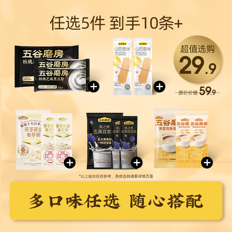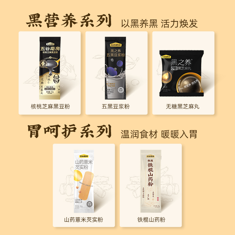 黑芝麻糊营养早餐 粉组合装 五谷磨房爆款 食养谷物营养代餐粉条装