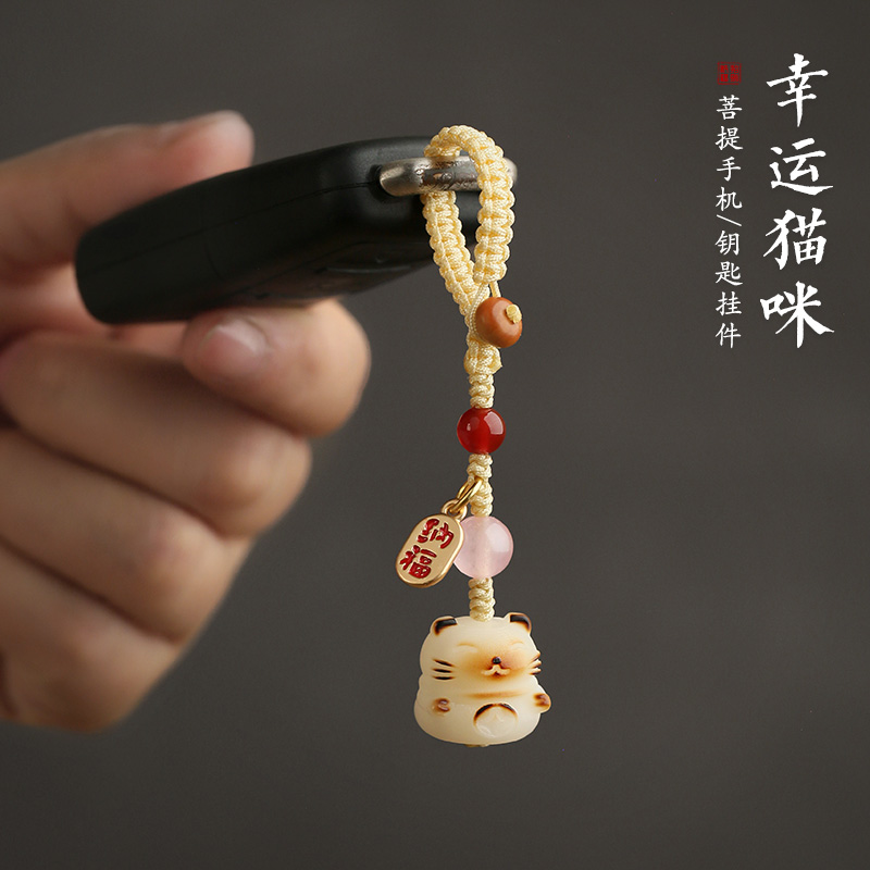 天然白菩提可爱卡通猫咪钥匙链手机挂绳汽车钥匙挂件小清新钥匙扣