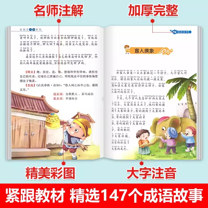 老师推荐 中国成语故事一年级二年级阅读书籍儿童拼音版 成语故事大全小学生版 成语接龙中华成语故事 加厚彩图注音版 酷小丫