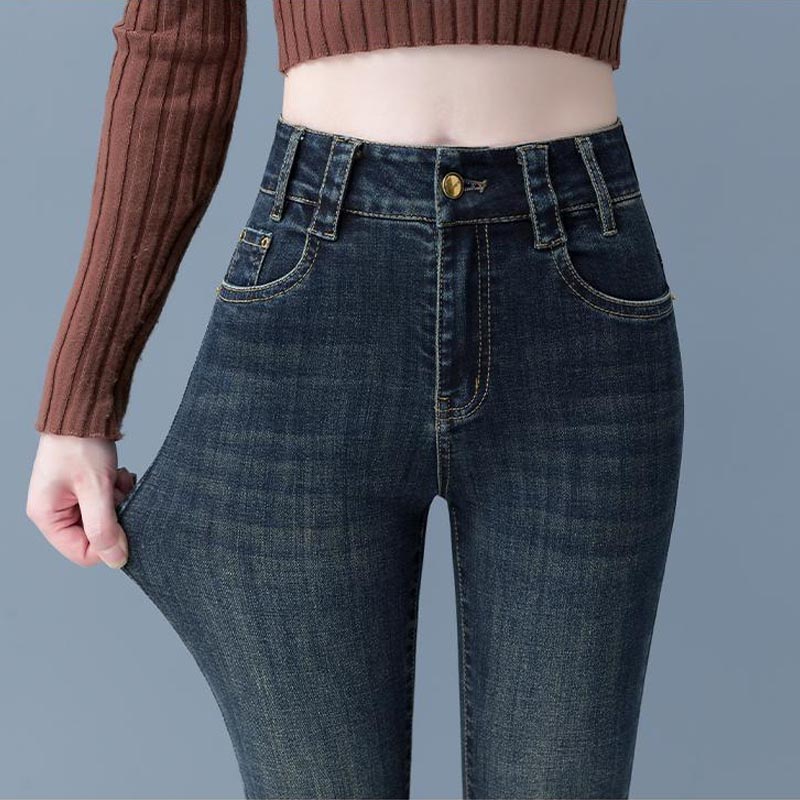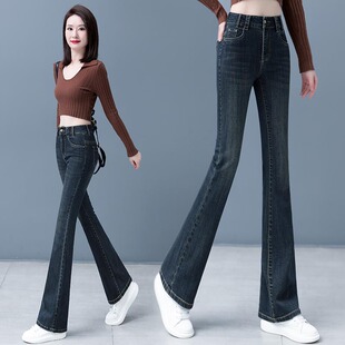 丹宁蓝色防褪色高腰显瘦直筒裤 女2025年春秋新款 子 阔腿牛仔裤 窄版
