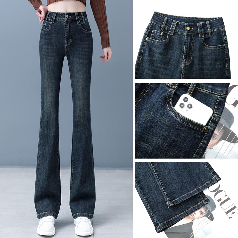 长裤 女原色高腰显瘦流行加长微喇裤 复古蓝色牛仔裤 DPLAY2025秋季