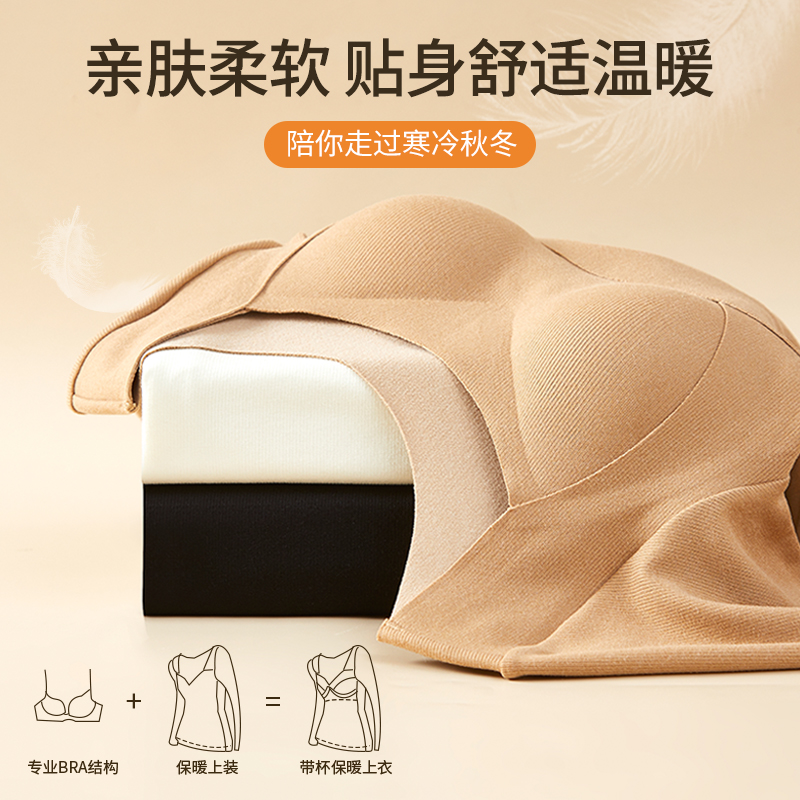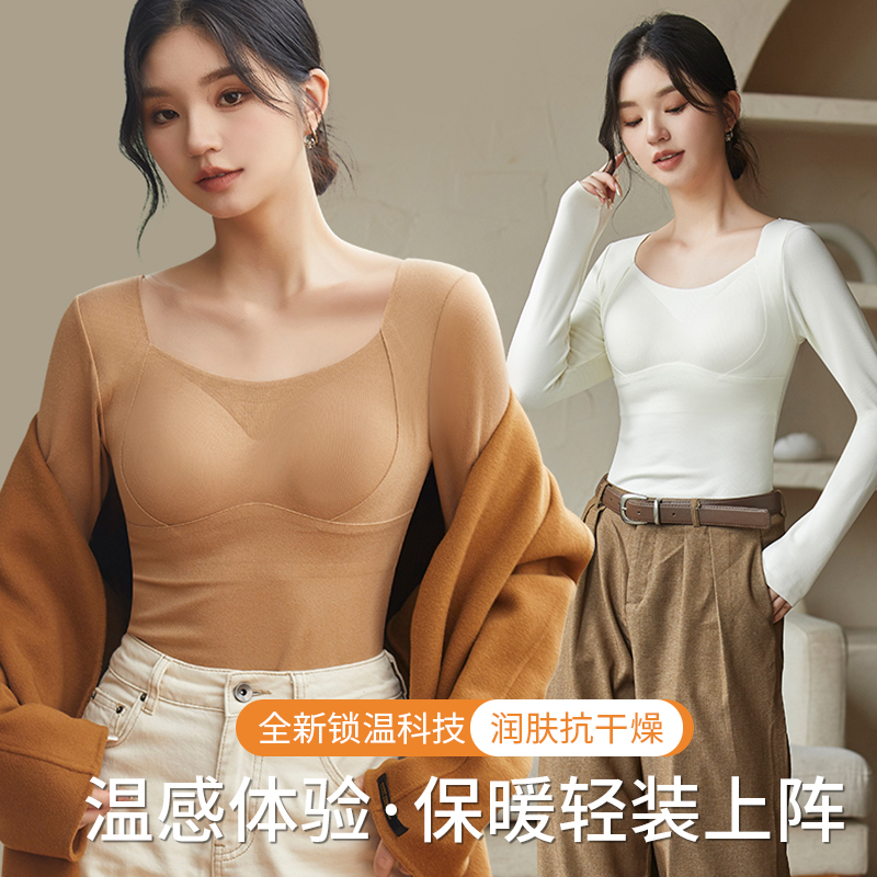 秋衣 内搭外穿打底衫 无痕保暖内衣女士冬季 加绒发热带胸垫2023新款