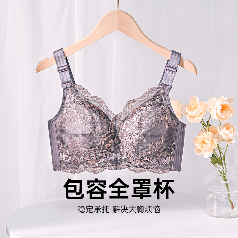 全罩杯防下垂微聚拢胸罩无痕大胸显小文胸 遐内衣女薄款 小清风