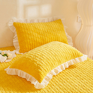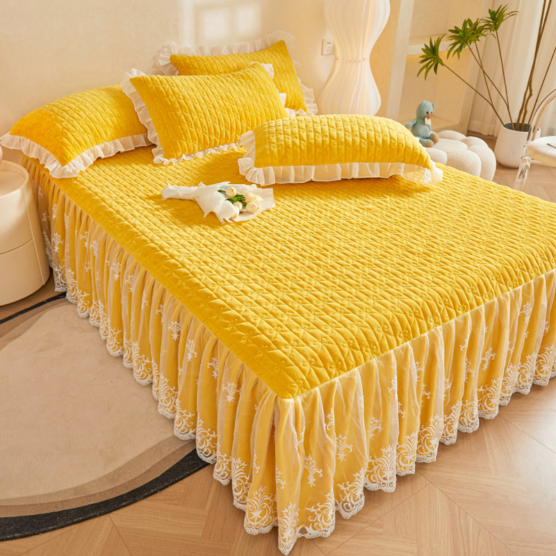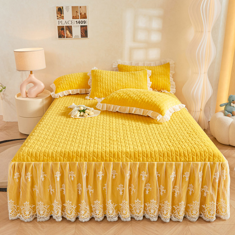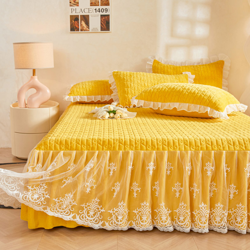 冬季 床罩单件高级感蕾丝花边加厚床单公主风 纯色牛奶绒夹棉床裙式