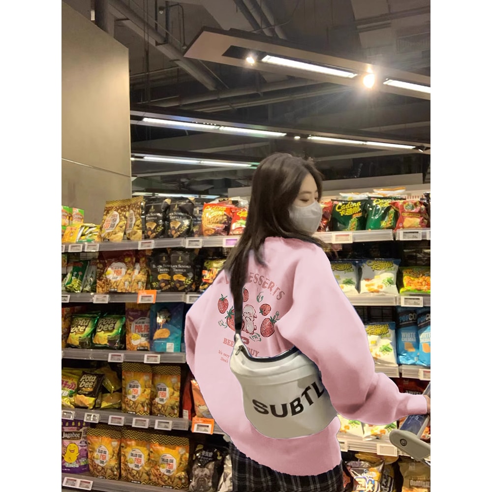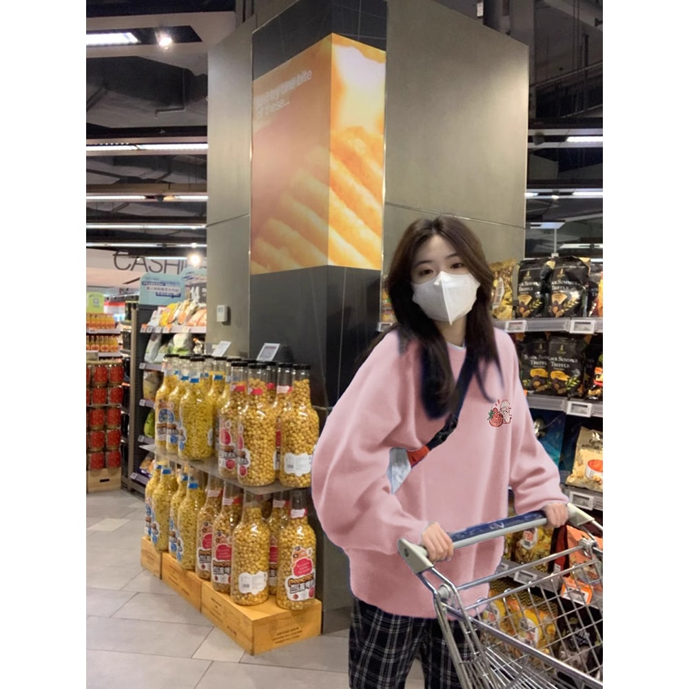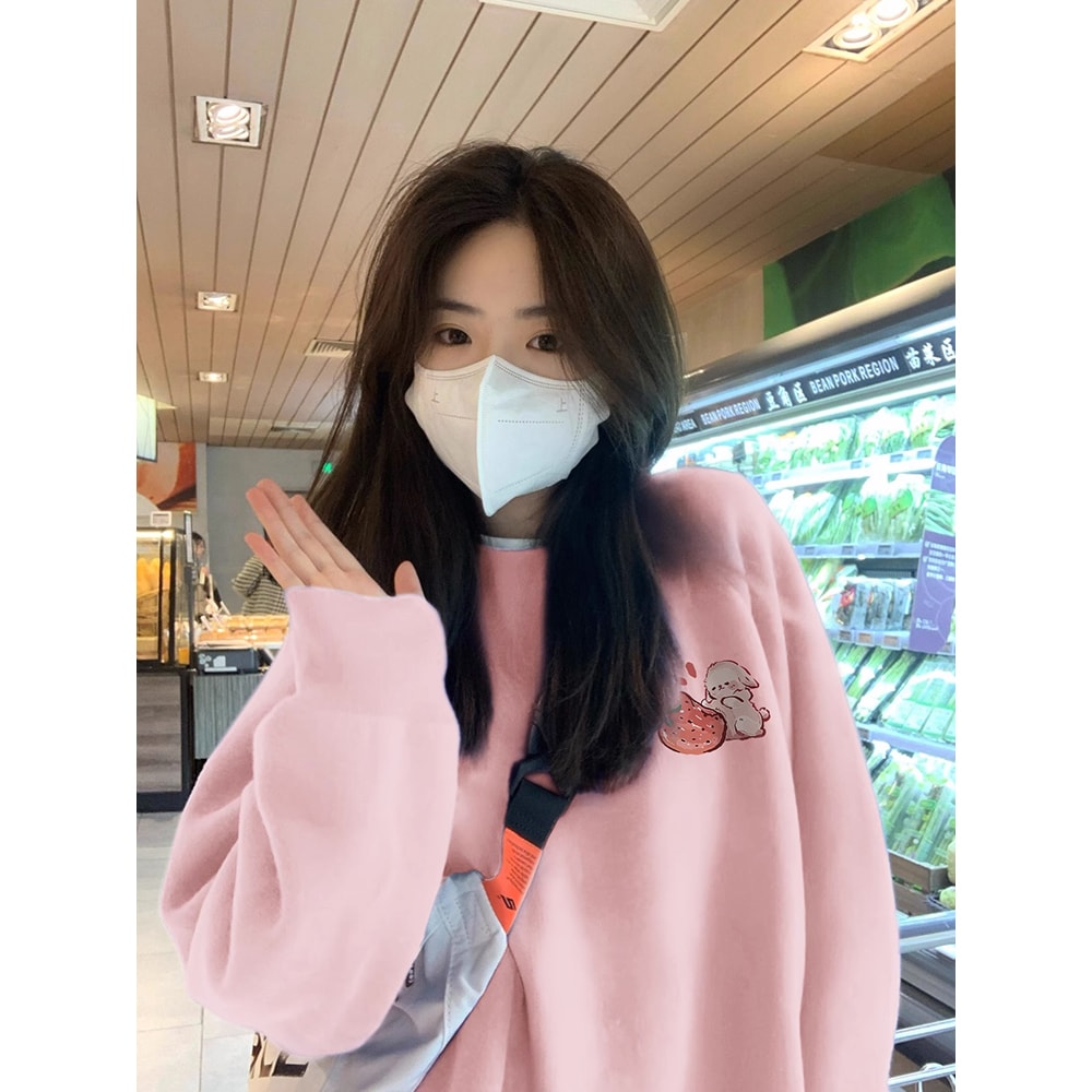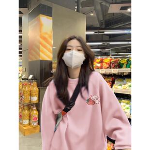 小个子长袖 爆款 上衣 韩系无帽卫衣女春秋2025新款 粉色正肩圆领薄款