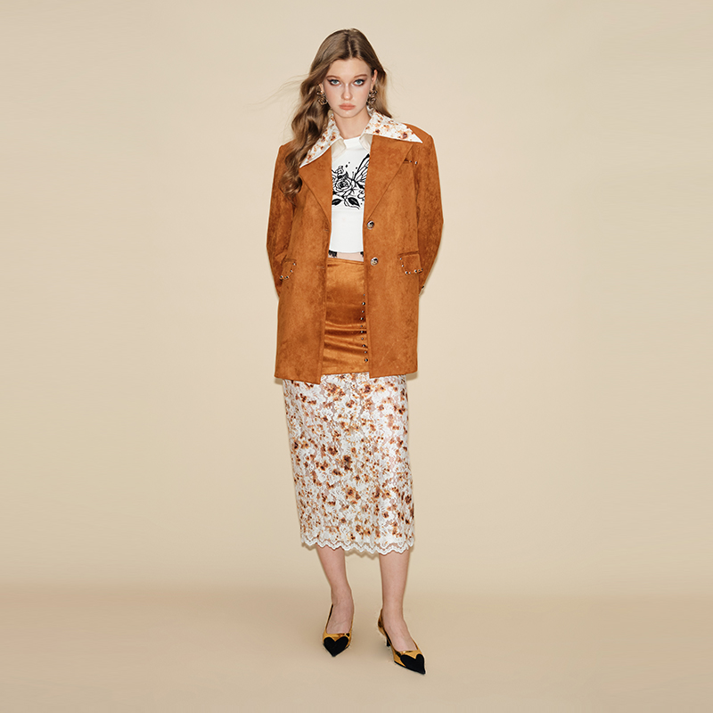 时尚 EIMISMOSOL中长款 秋冬新款 蕾丝半裙套装 设计 假两件西装