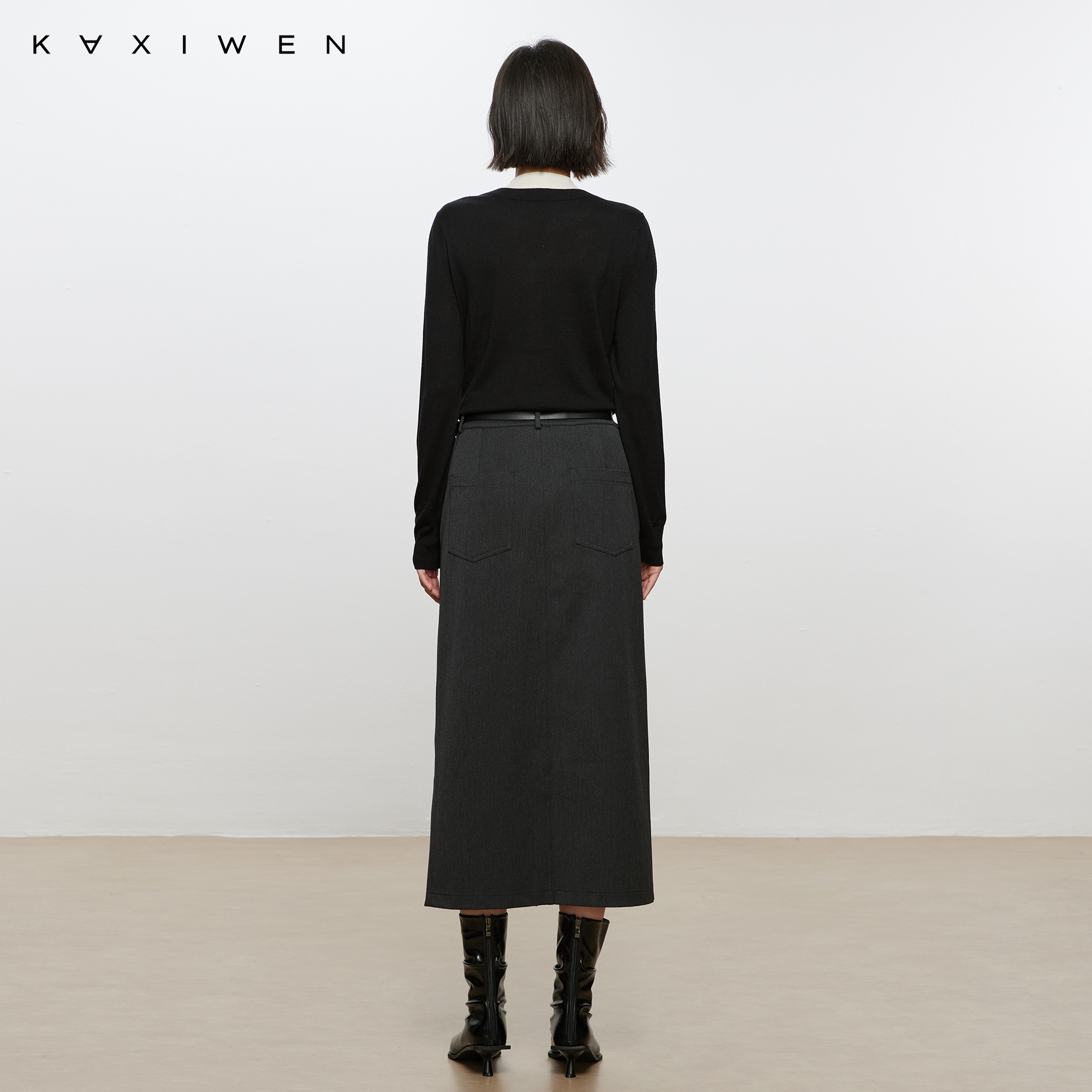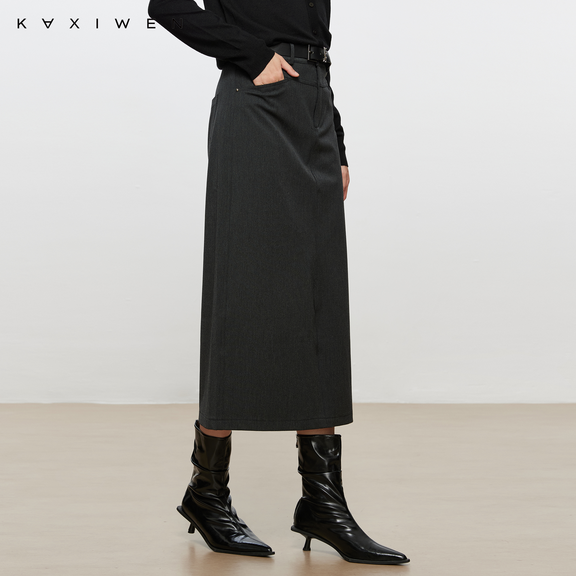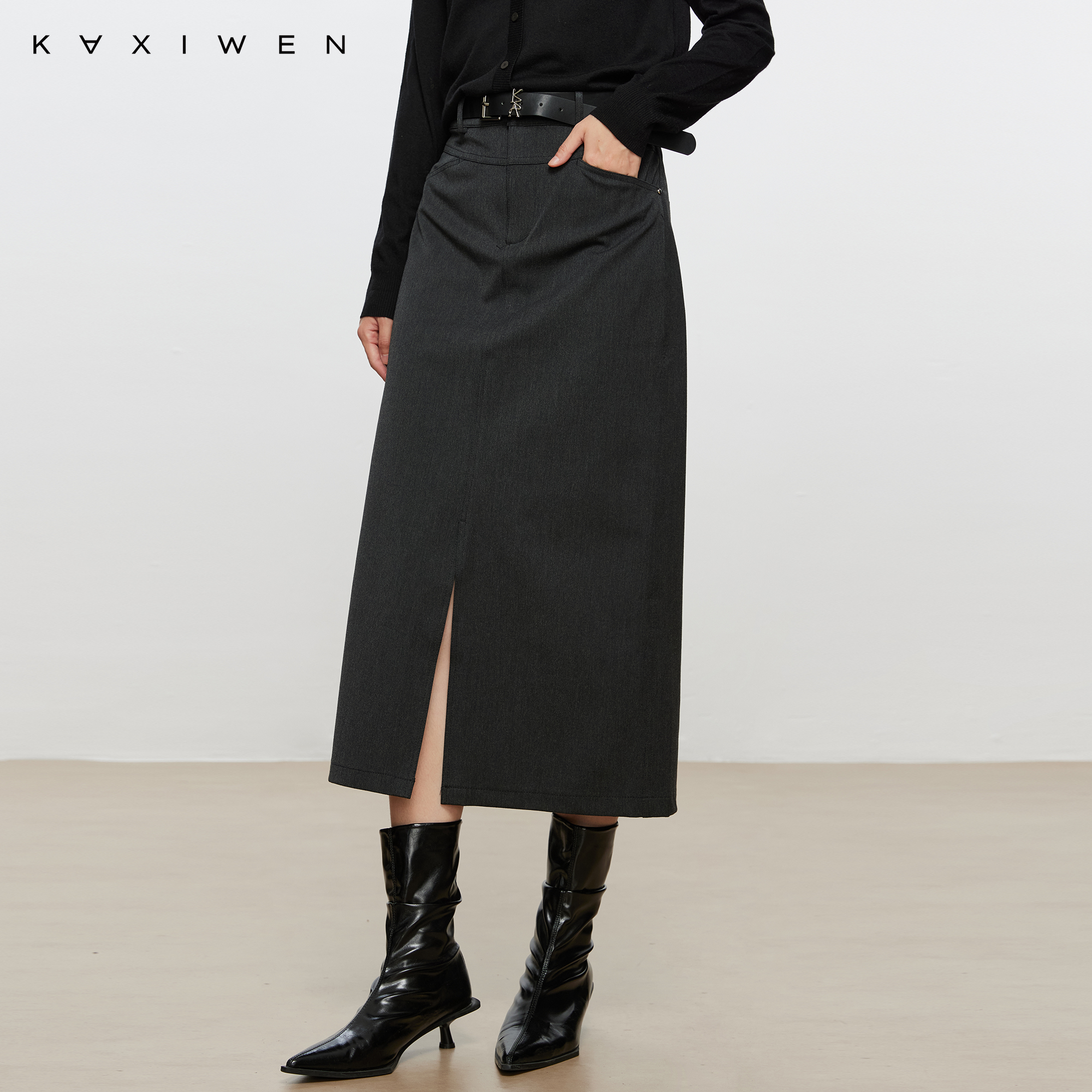 森柔牛仔 森马牛仔半身裙女开叉长裙显腿长秋盐系复古直筒裙潮酷