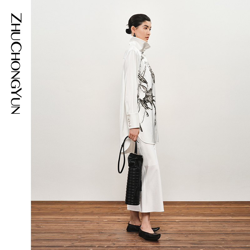 原创花稿宽松直身缎面衬衫 ZHUCHONGYUN冬季 白夜之诗
