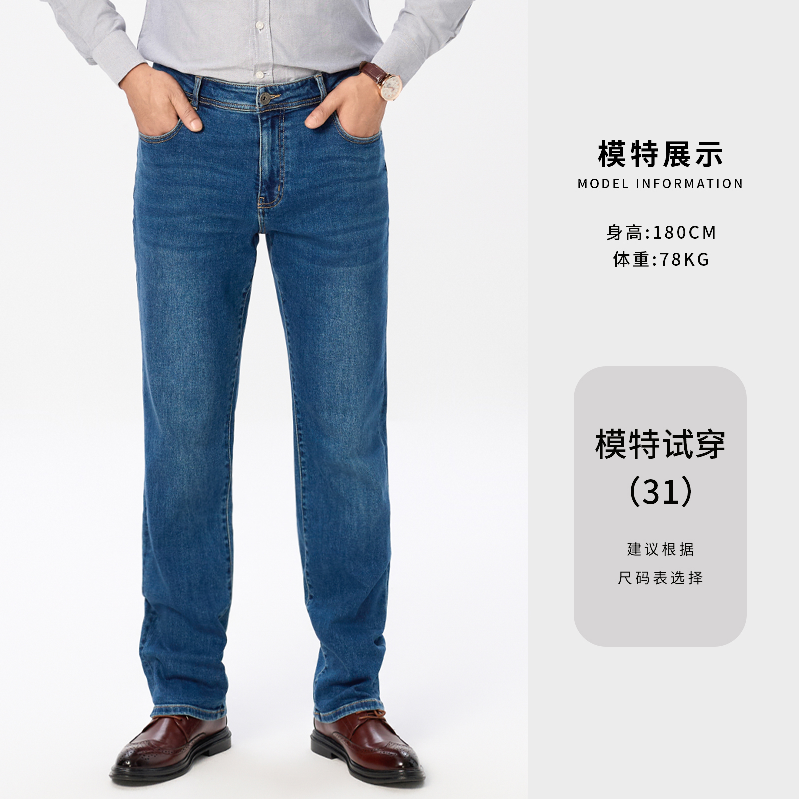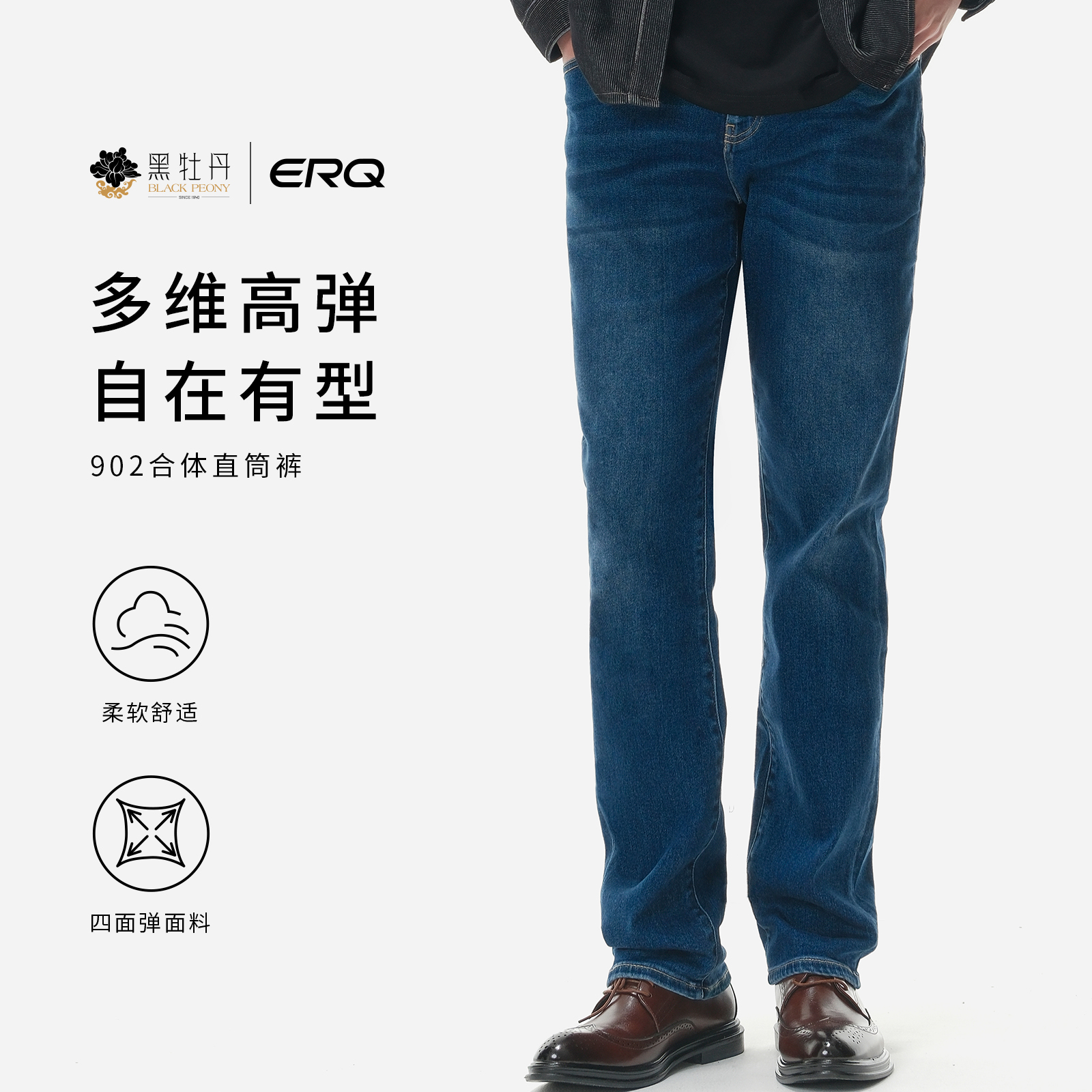 ERQ902男士 亲肤宽松高弹力中腰直筒牛仔裤