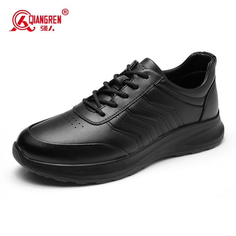 通勤软底轻便板鞋 保暖加绒真皮黑色休闲鞋 冬季 强人3515男运动皮鞋