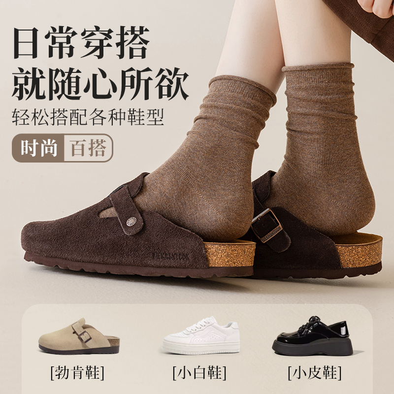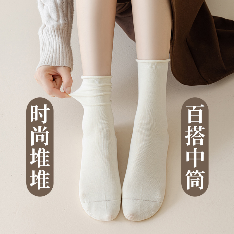 长袜子 乐福鞋 黑色堆堆袜女春秋款 纯棉中筒无骨棉袜秋冬搭配小皮鞋