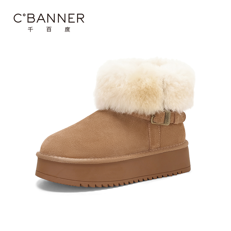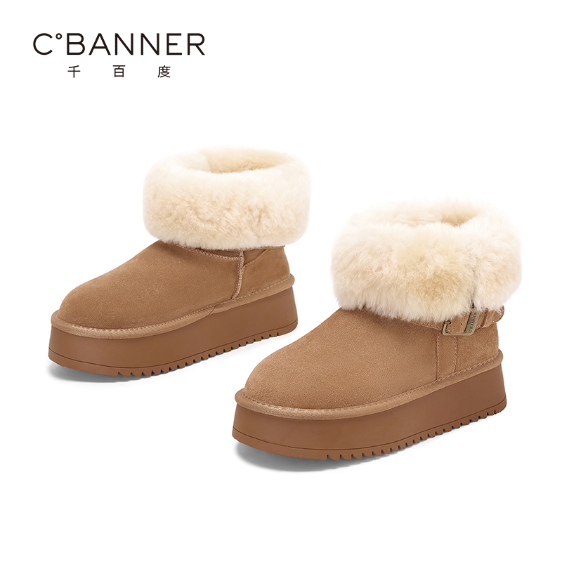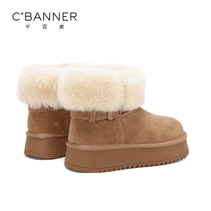 加绒加厚松糕厚底皮毛翻边保暖毛毛靴棉鞋 千百度雪地靴女冬季 新款