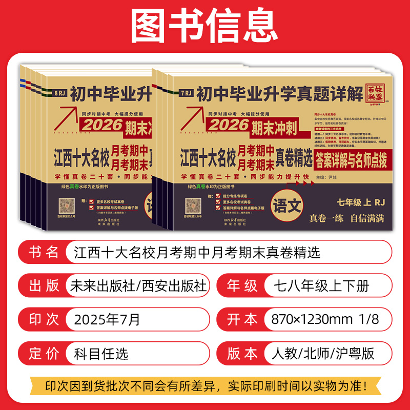 期中期末试卷全套初中毕业升学真题详解初一二三上册试卷全套 2026初中同步测试卷百校联盟七八九年级上下册同步单元 江西专版