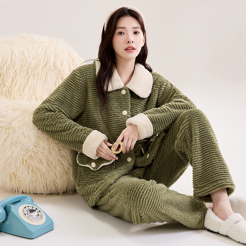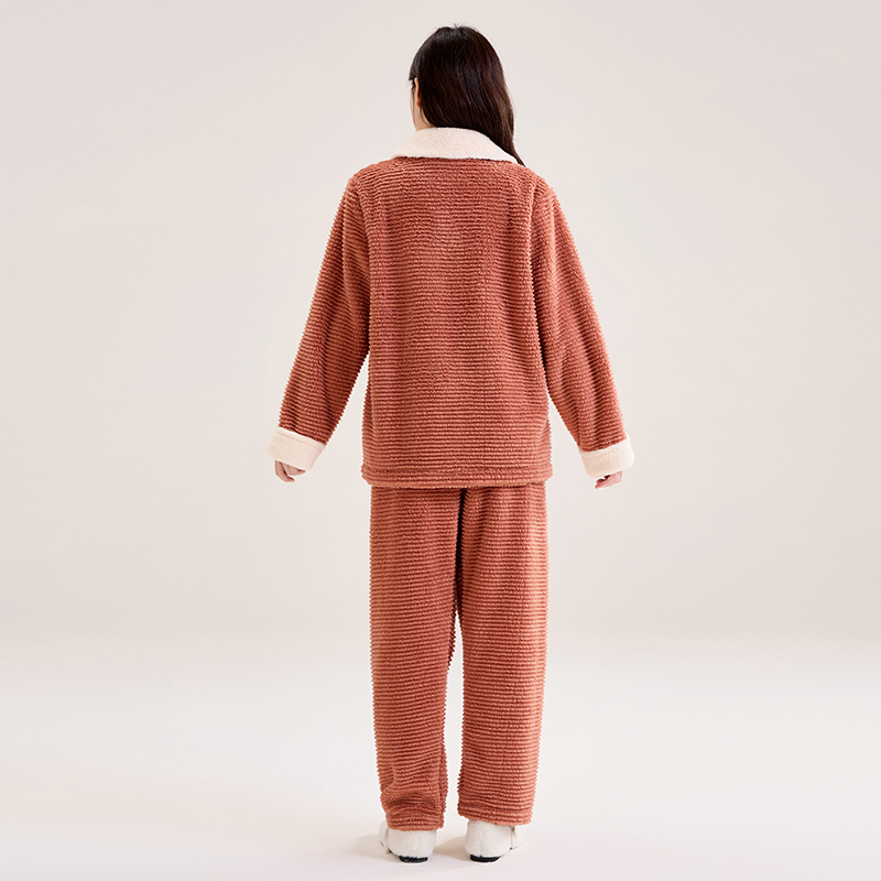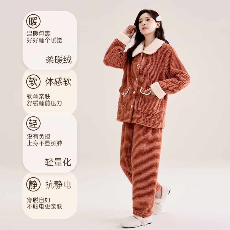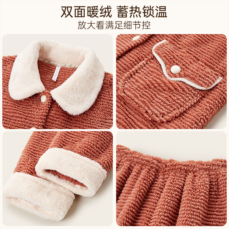 家居服春秋新款 加厚法兰绒加绒套装 珊瑚绒睡衣女秋冬季 2025年冬款