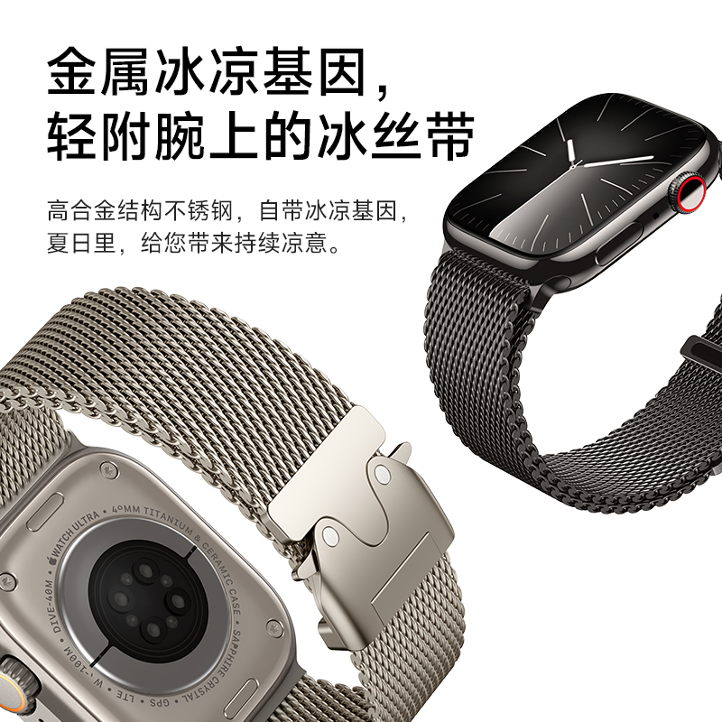 米兰尼斯表带适用于苹果iwatchS10手表带applewatch9手表链ultra2腕带钛金属色不锈钢男女夏 2025新款 W&P