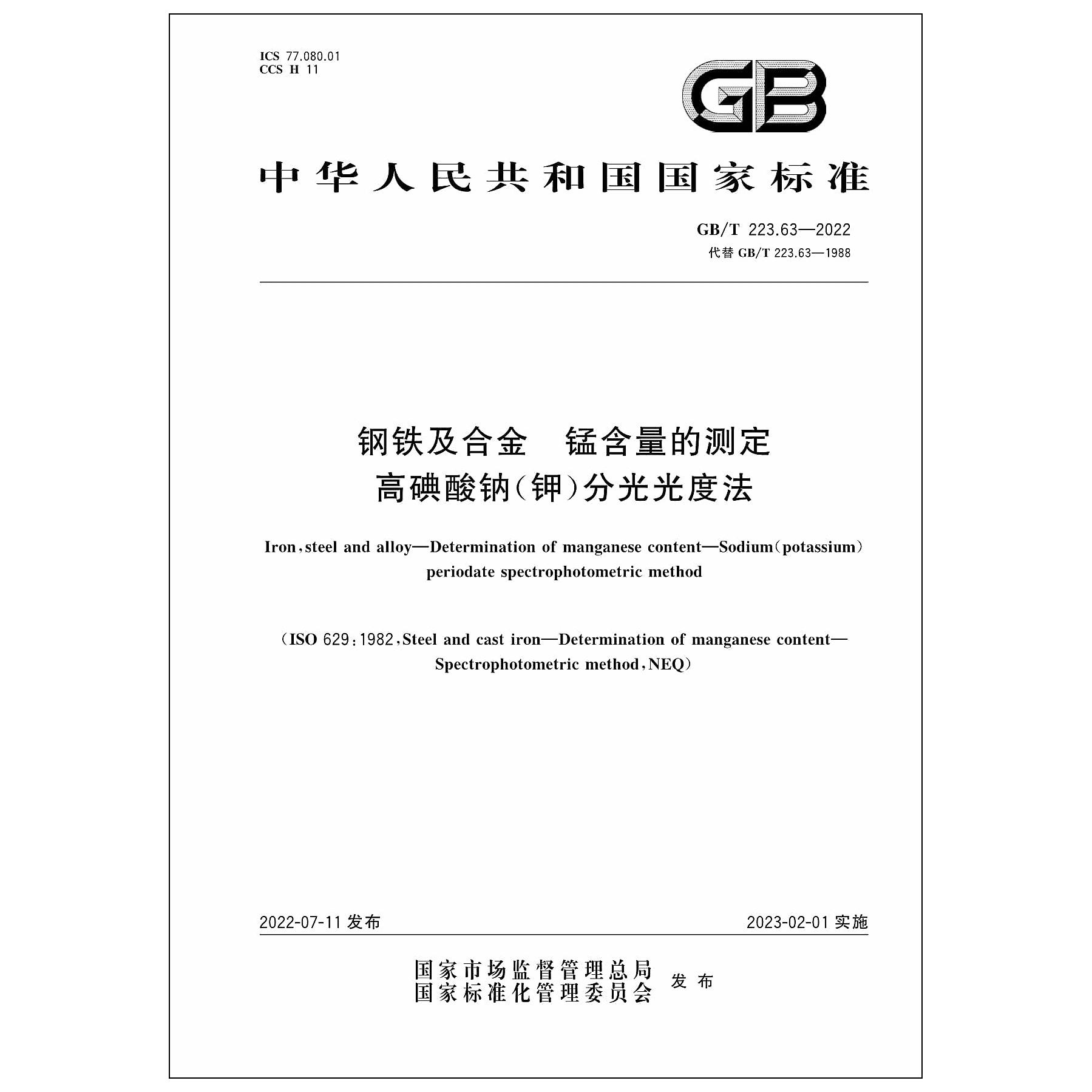 现货 T223.63 2022钢铁及合金化学分析方法高碘酸钠 223 223.63 2022正版